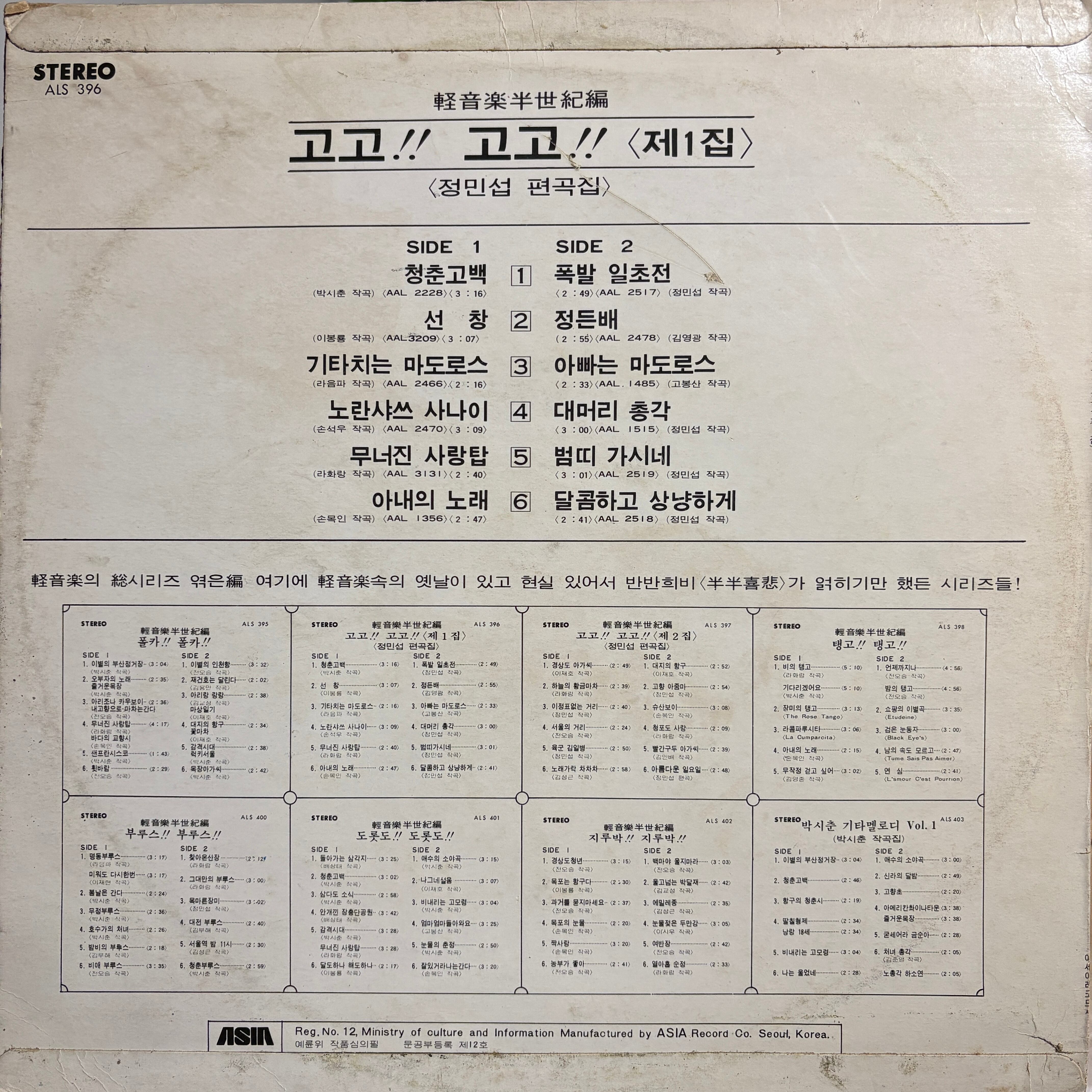 Comment : 韓国の人気アレンジャー/作曲家ジョンミンソプ氏率いる彼のバンドによる、70年中期にリリースされた歌謡ヒット曲ドラムカヴァー集。随所に散りばめられたドラムブレイクと韓国の人気歌謡のイナタイカバーがクセになる一枚です。