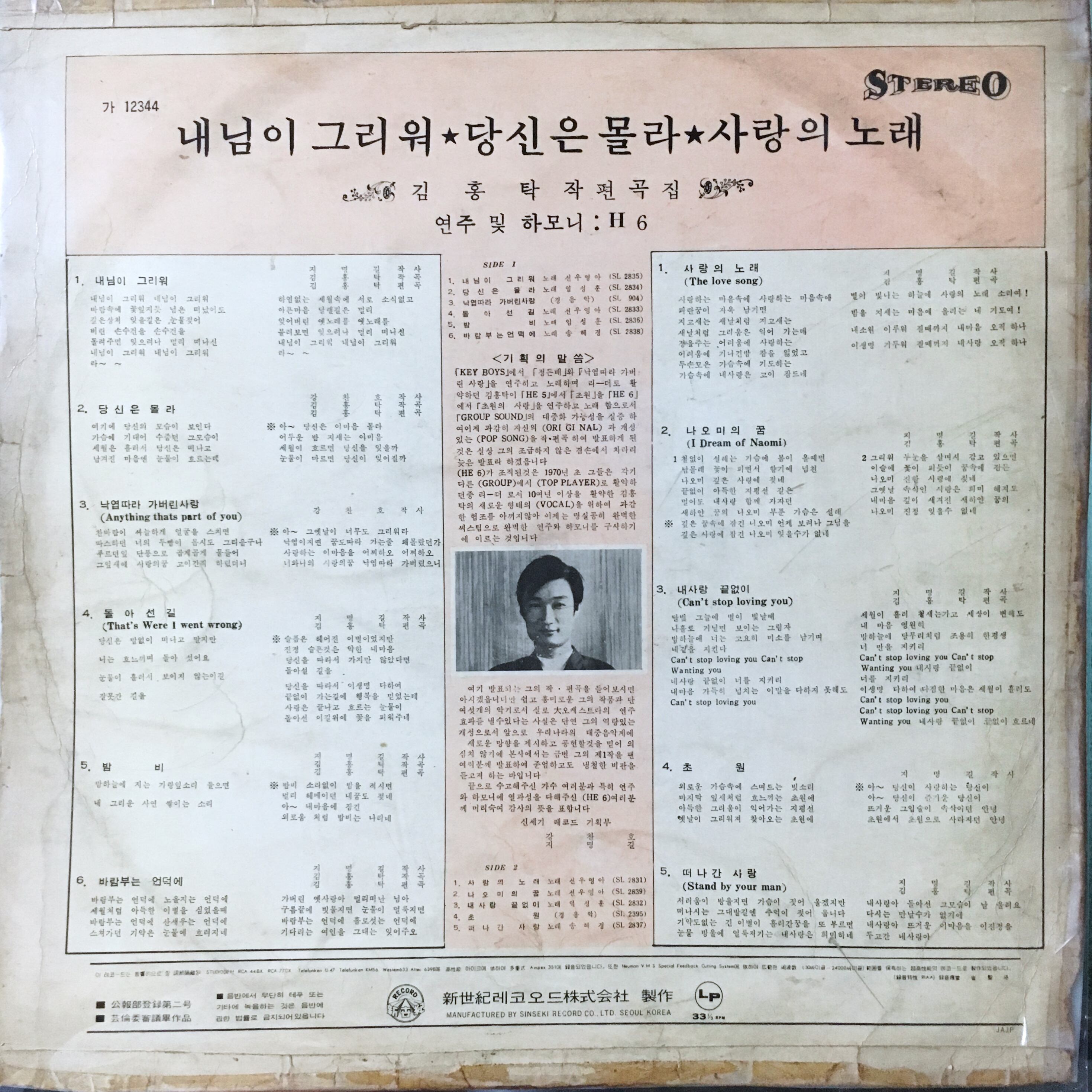 【LP】Seon Woo Young A With He6 1971 Kim Hong Tak Collection GA-12344