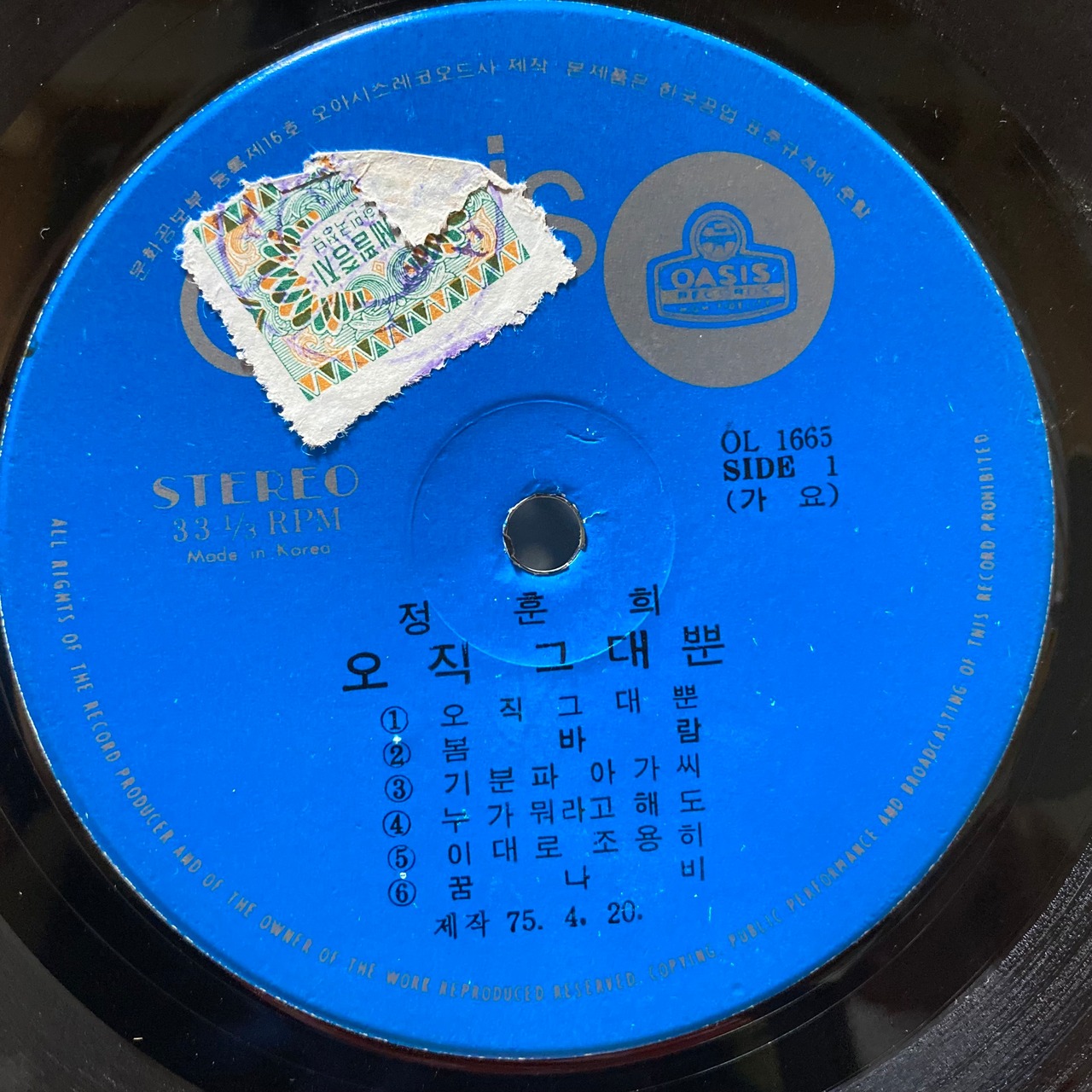 【LP】Jeong Foon Hee Only You 1975 OL1665