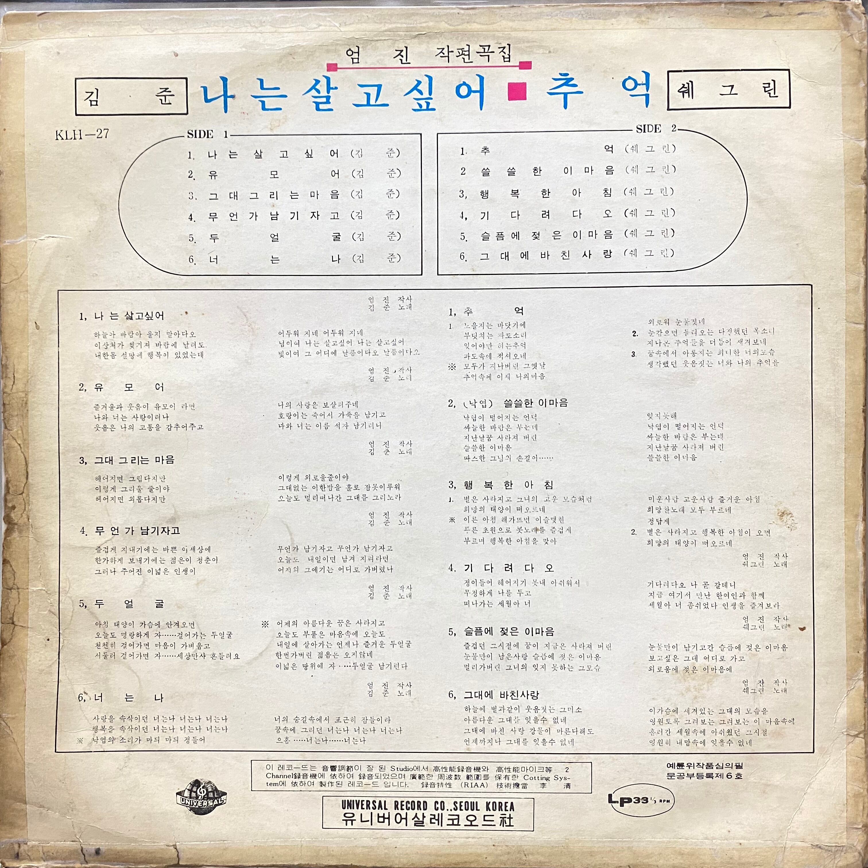 【LP】Kim Jun / She Geu Rin I Want To Live, The Recollection 1970 KLH-27