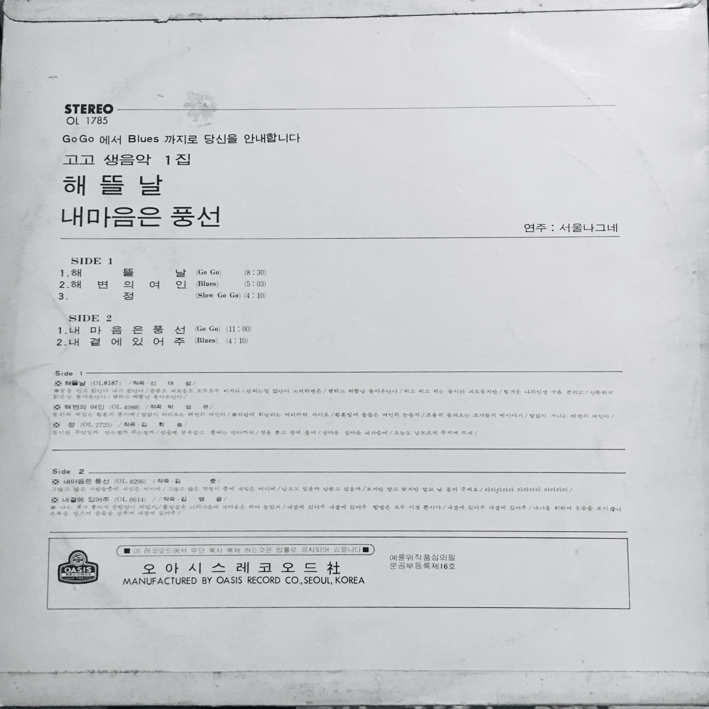 【LP】Seoul Traveler Go Go Raw Music Vol.1 ソウルナグネ ゴーゴー生音楽1集 1976 OL 1785