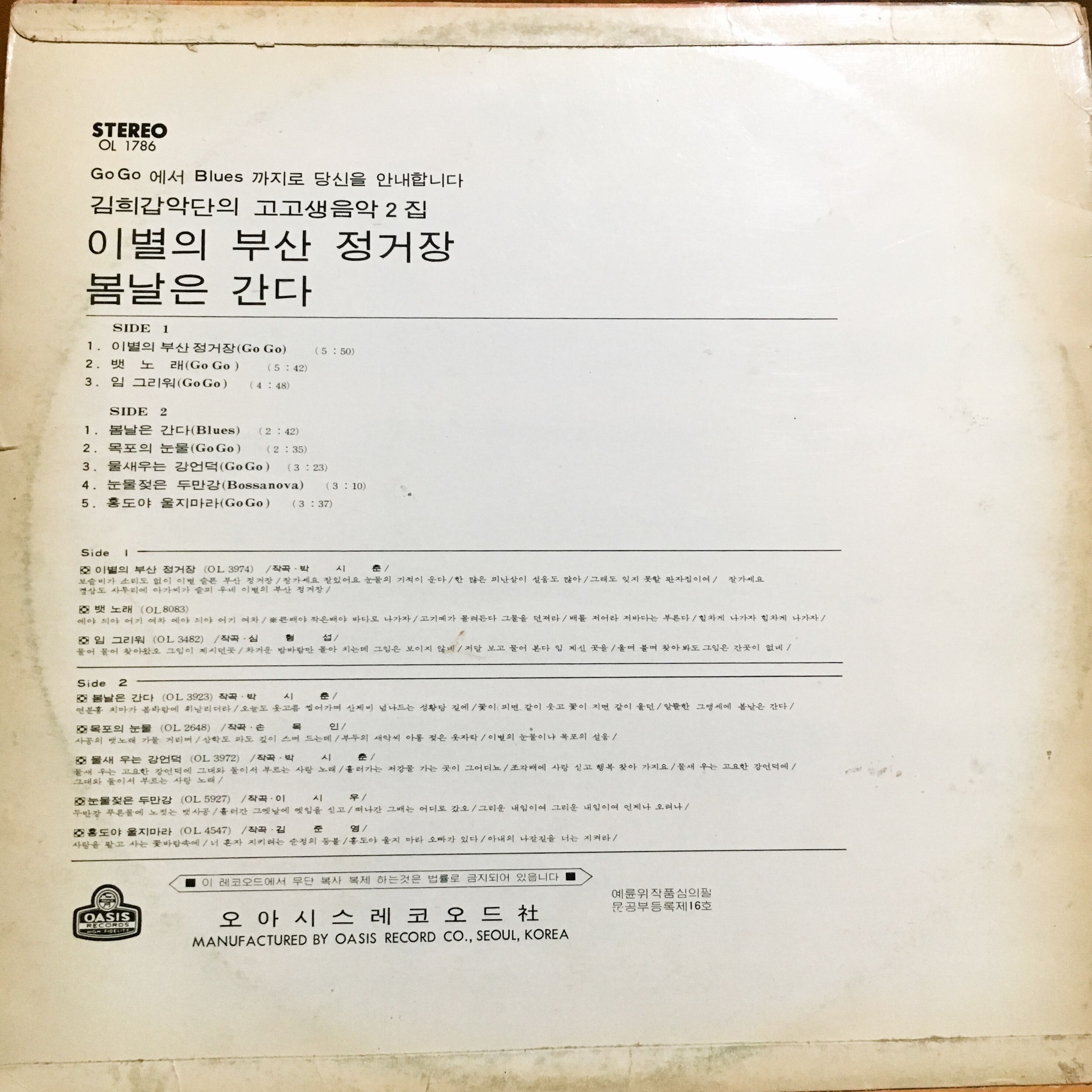 【LP】Kim Hee Gap Band Go Go Raw Music Vol.2 1976 OL 1786 キムヒガプ ゴーゴー生音楽2集