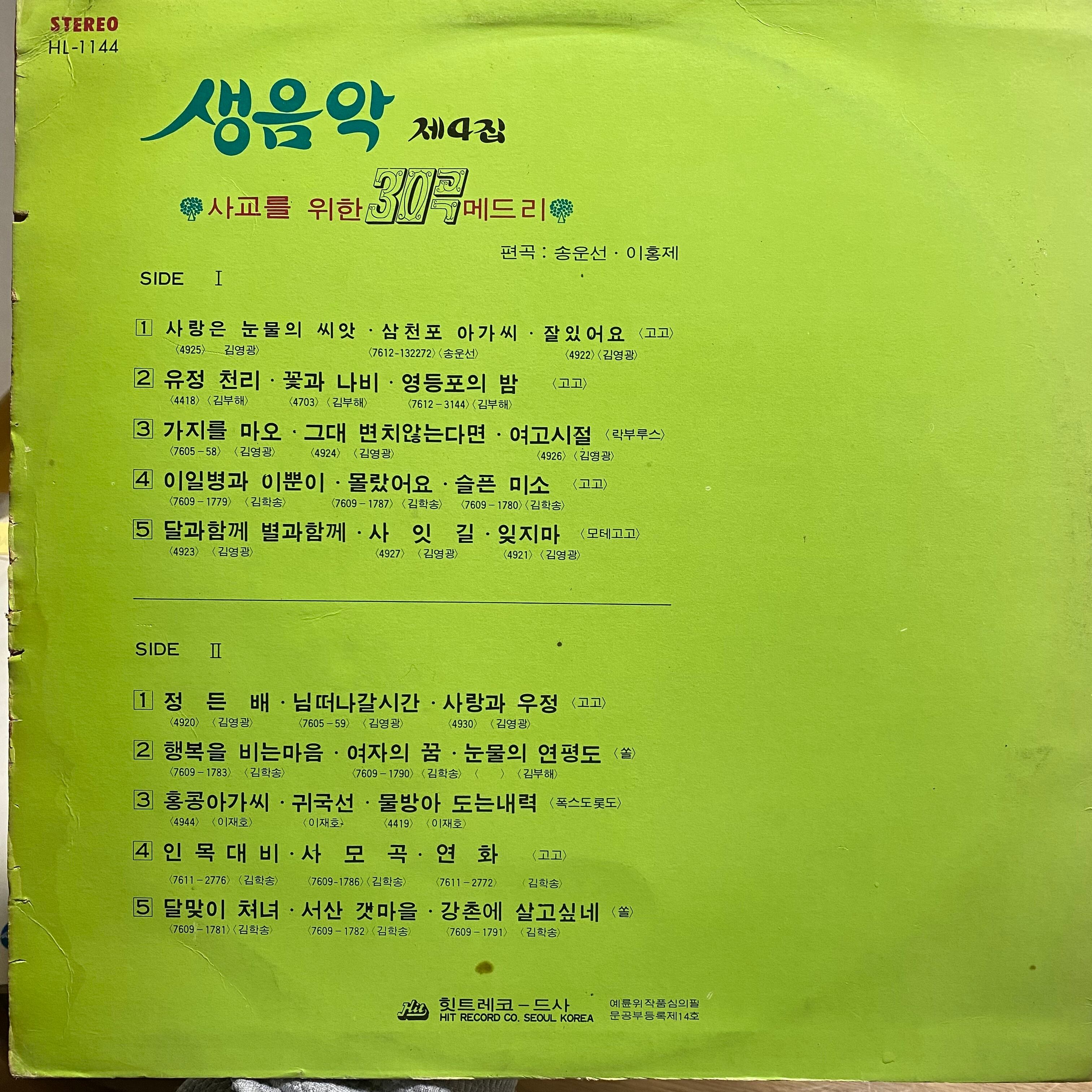 Comment : ヒットレコードの専属バンドによるヒット歌謡インスト第4集。キムハクソン氏やキムヨングァン氏の名曲多数収録です!ジャケットからは想像もつかない様な、B-Boy心を擽るGo Go Funkを多数収録した推薦盤です。スリリングなブレイクやイントロ是非チェックして欲しい一枚です。