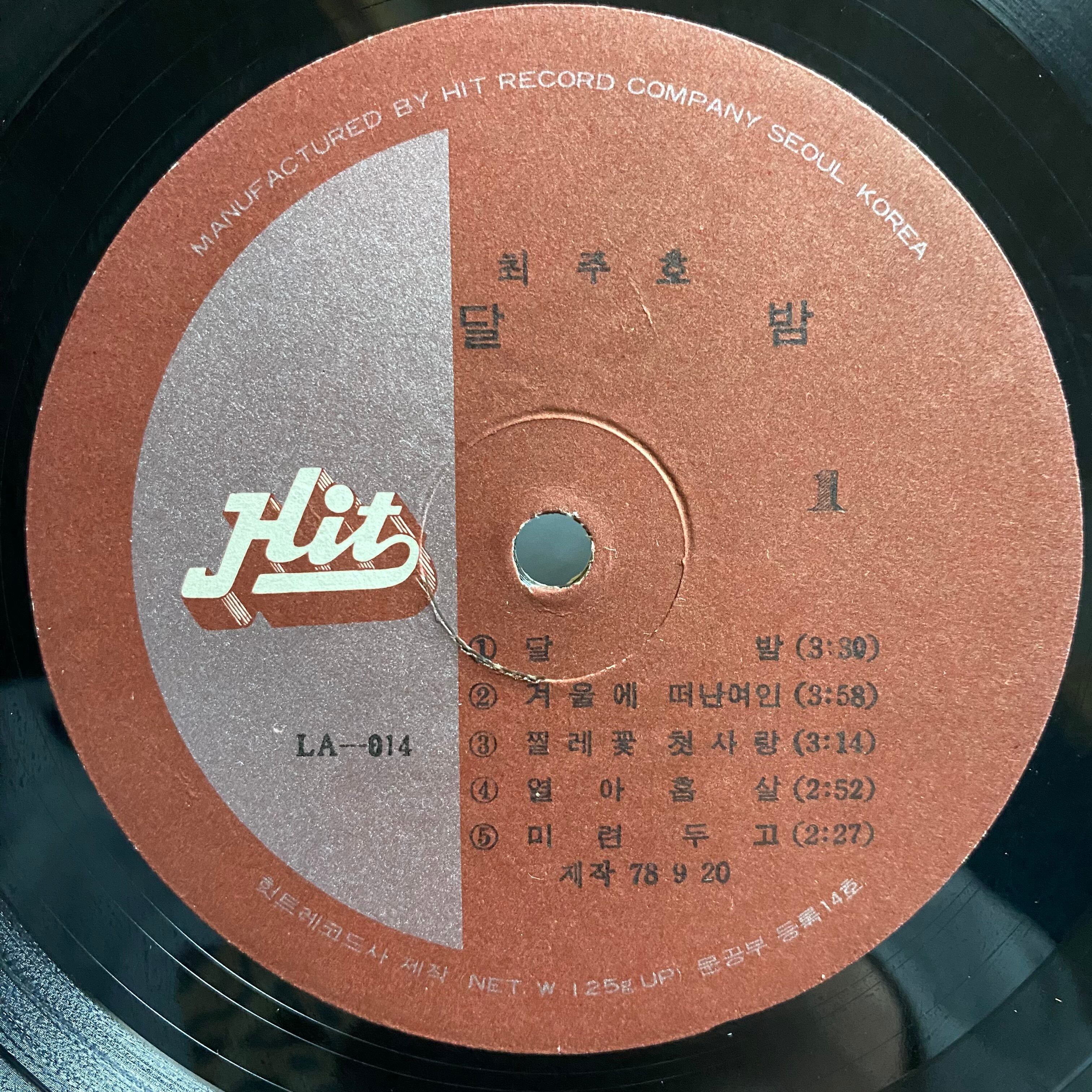 Comment : 韓国の男性シンガー チェジュホ氏の78年作。イントロから一切ファンキーなB1”ソギャンエヨイン(夕日の女人)“, 長尺のファンキーグルーヴイントロのA1