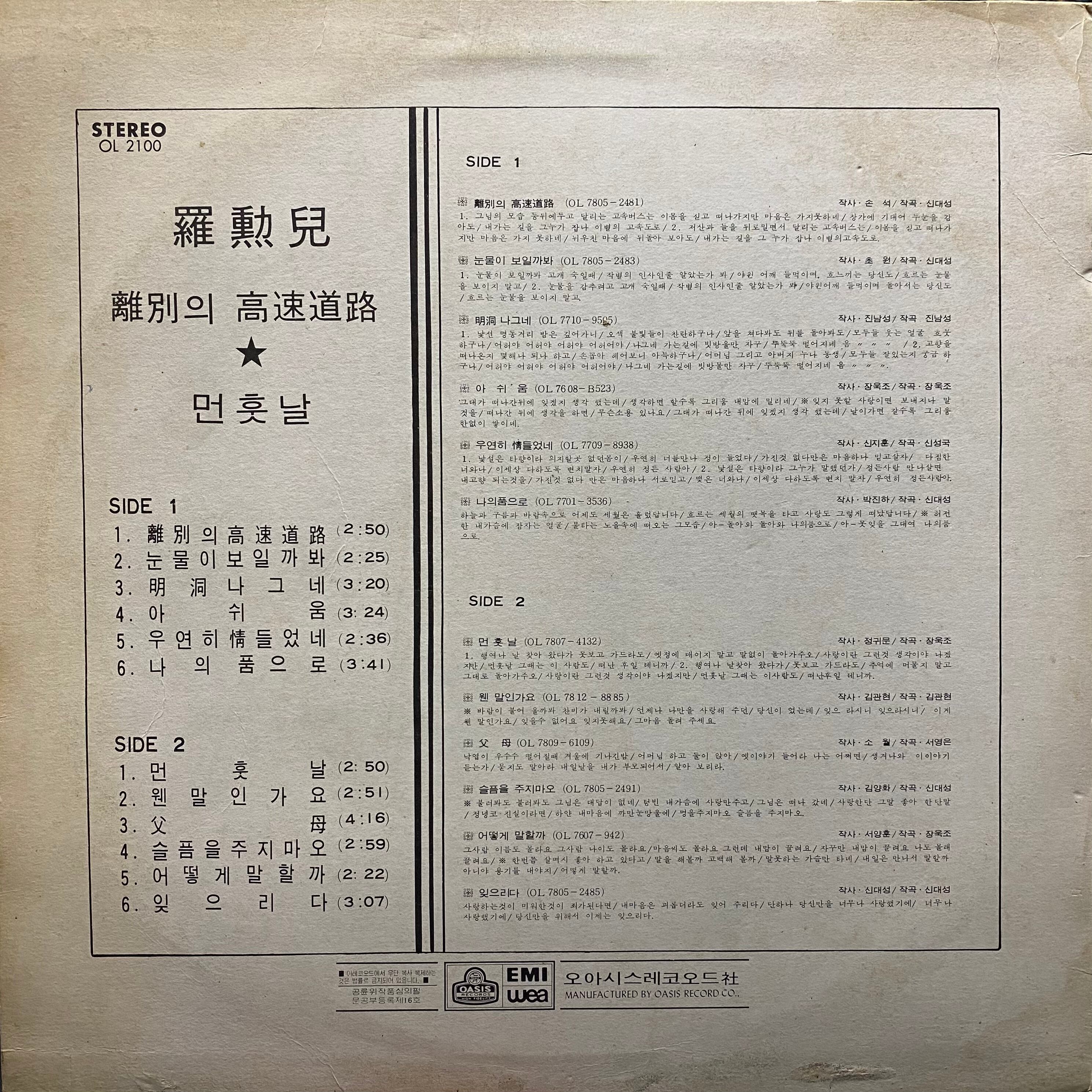 【LP】Ra Foon Na 羅勲児 離別の高速道路 ナフナ 1978 OL 2100