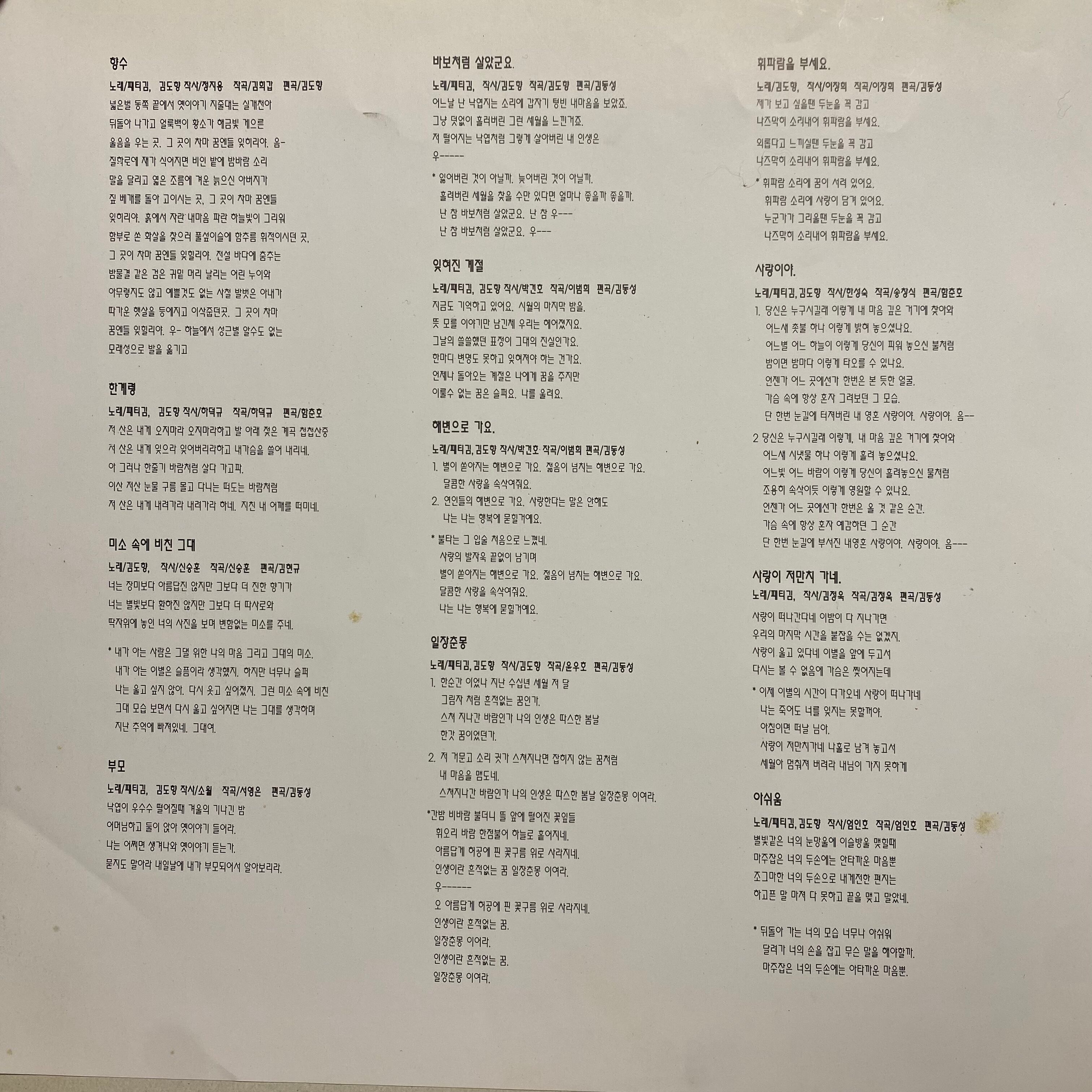 Comment : 日本でも活躍したベテラン女性シンガー パティキムとキムドヒャンの混声デュオ。キムドヒャンはフォークデュオ Two Koreansで70年代に人気博しました。本作はグループサウンド Key BoysのB1”ヘビョヌロカヨ(海辺の歌謡)“のヒップハウスカバーをはじめキムドヒャンが歌う激渋ファンク歌謡A3”ミソソゲビチンクデ(微笑みの中に照らされた貴方)“を収録した隠れた名作です。レア。