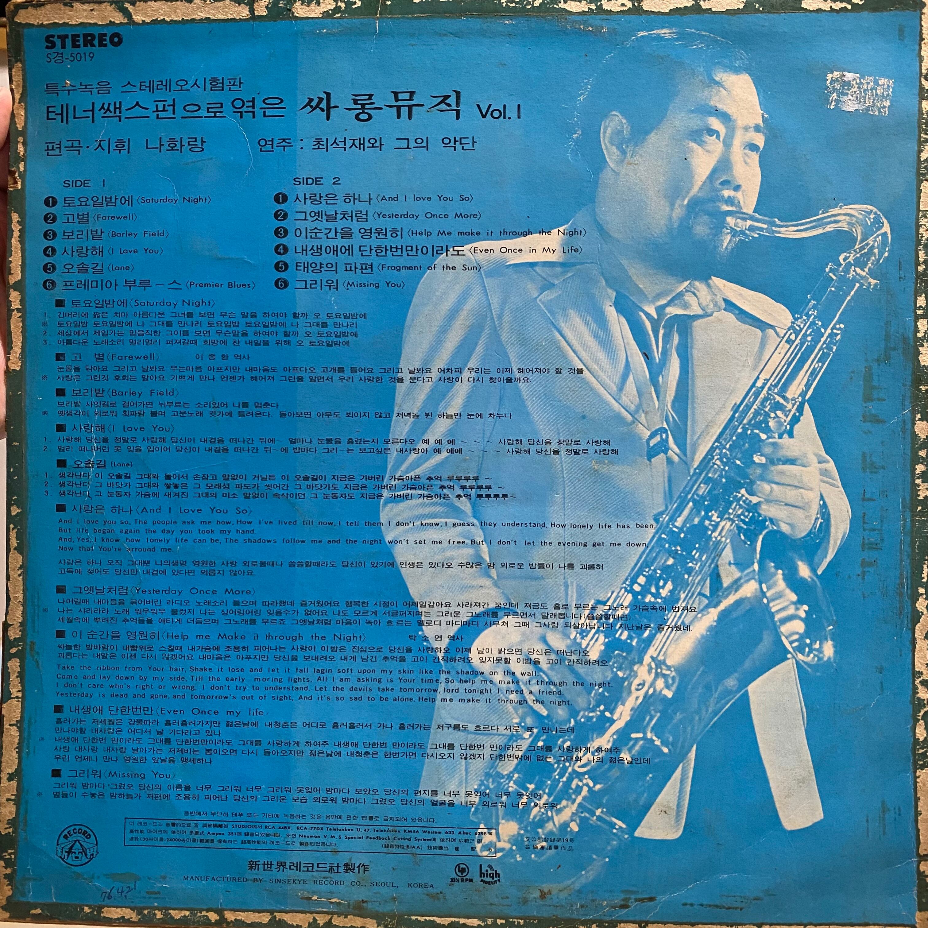 Comment : 韓国70年代に活躍した3大サックス奏者の1人チェソクジェと彼の楽団による74年作。韓国歌謡と英米ポップスのカヴァーを収録した歌謡インスト良盤。