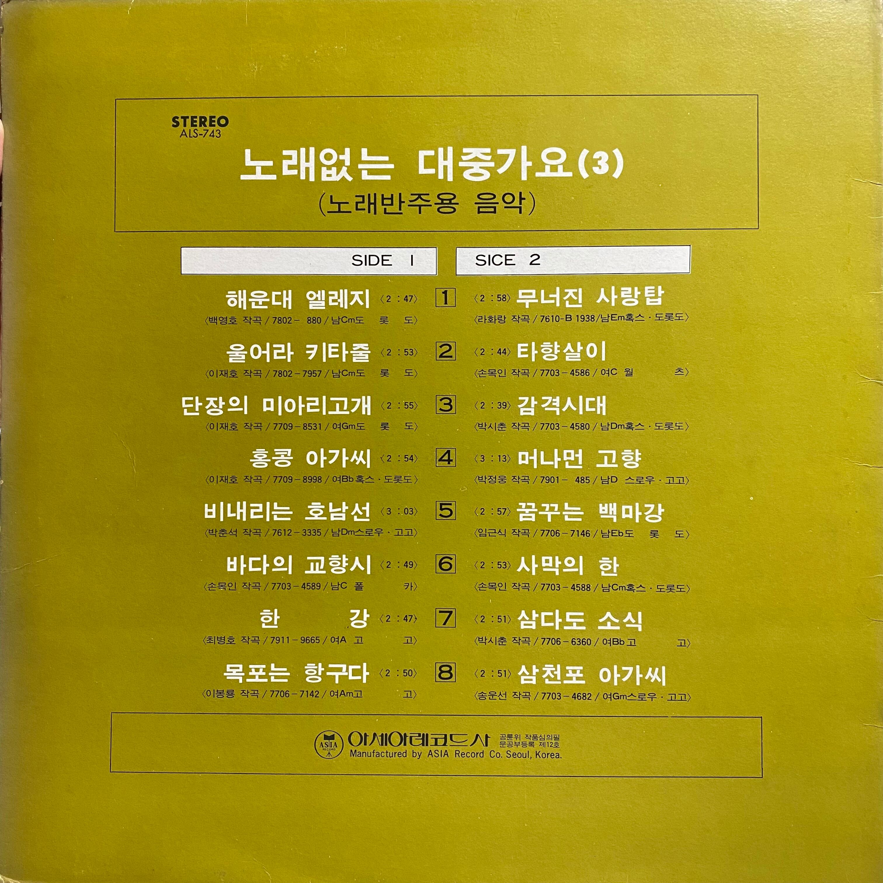 【LP】Asis Records House Band 歌の無い大衆歌謡 Popular Songs Without Lyrics Vol.3 1979 AL-743