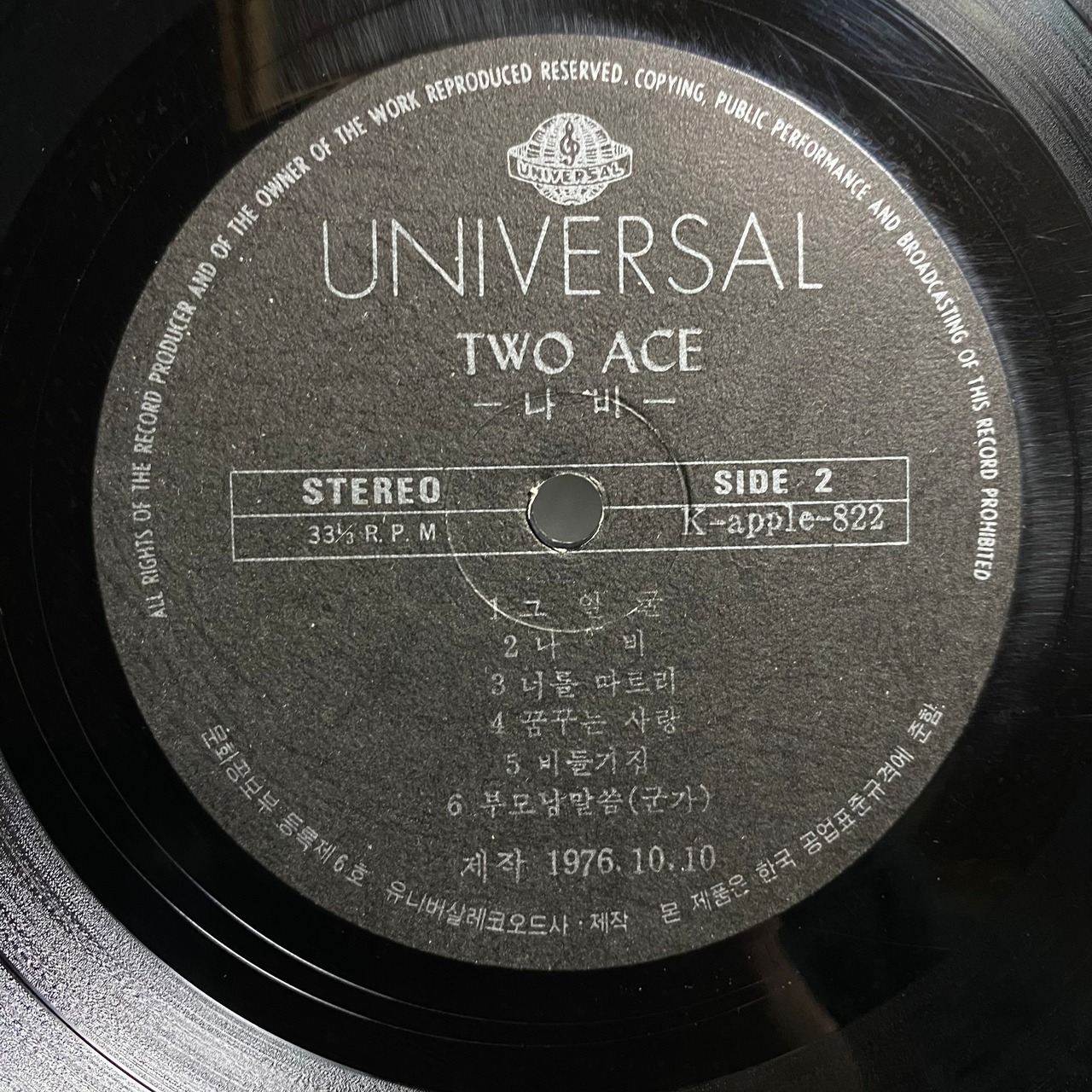 Comment : 韓国の人気フォークデュオTwoAceの76年作。イントロからドープなファンキーフォークB2“オルグル(顔)”、硬質のナイスドラムブレイクをイントロに収録したB4“ジョンアワエヤクソッ(ジョンアとの約束)”アップテンポなファンキーロックA1”ヤアヤパダロカジャ(よーし海に行こう!)等収録の推薦盤です。