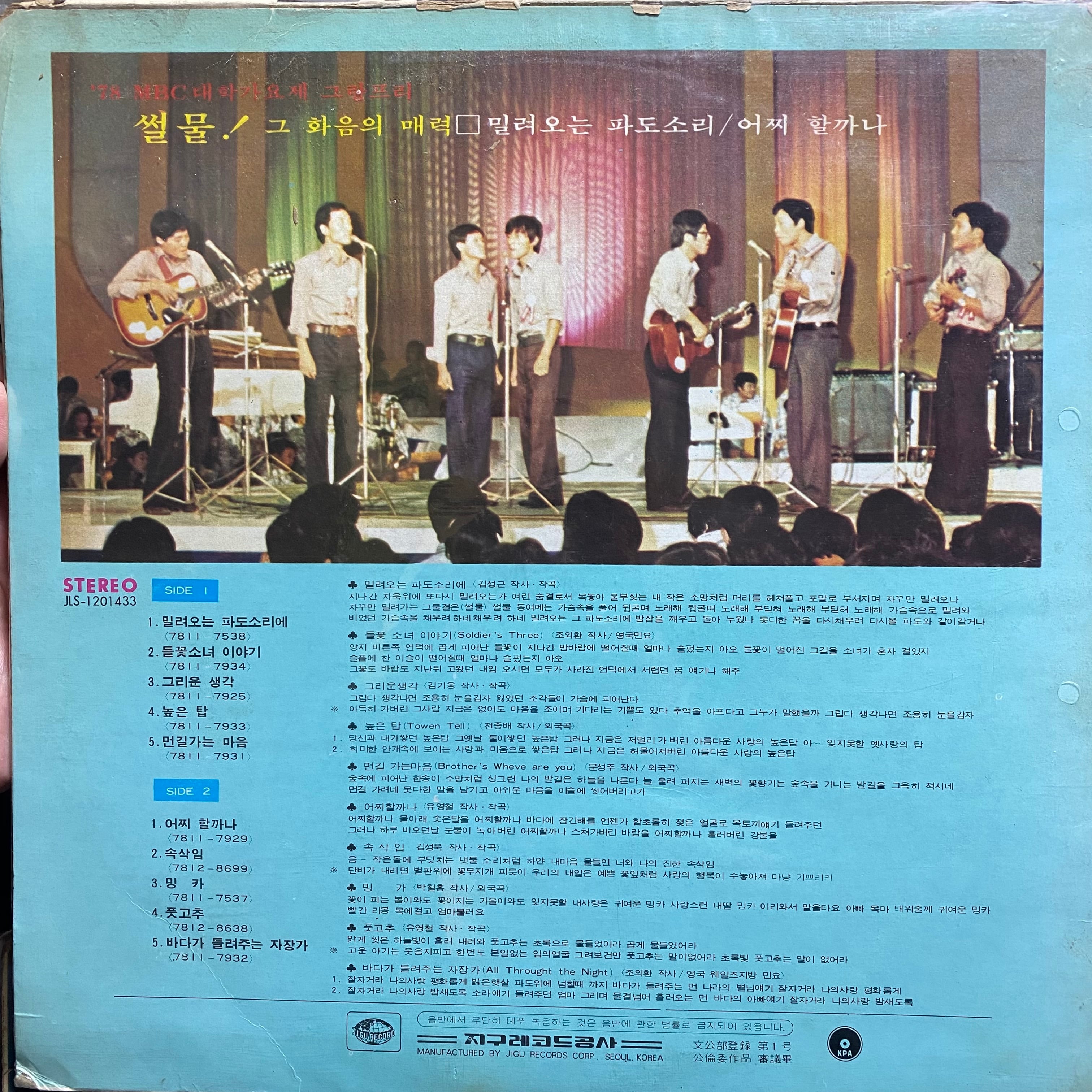 Comment : ‘78年MBC大学歌謡祭でグランプリを受賞した、韓国の人気フォークGSミルムルッソルムル(引き潮満ち潮)の79年作。打っているファンキーソウル歌謡収録のBサイドとOscar Brown jr. Brother Where Are Youのカヴァー等オススメです!