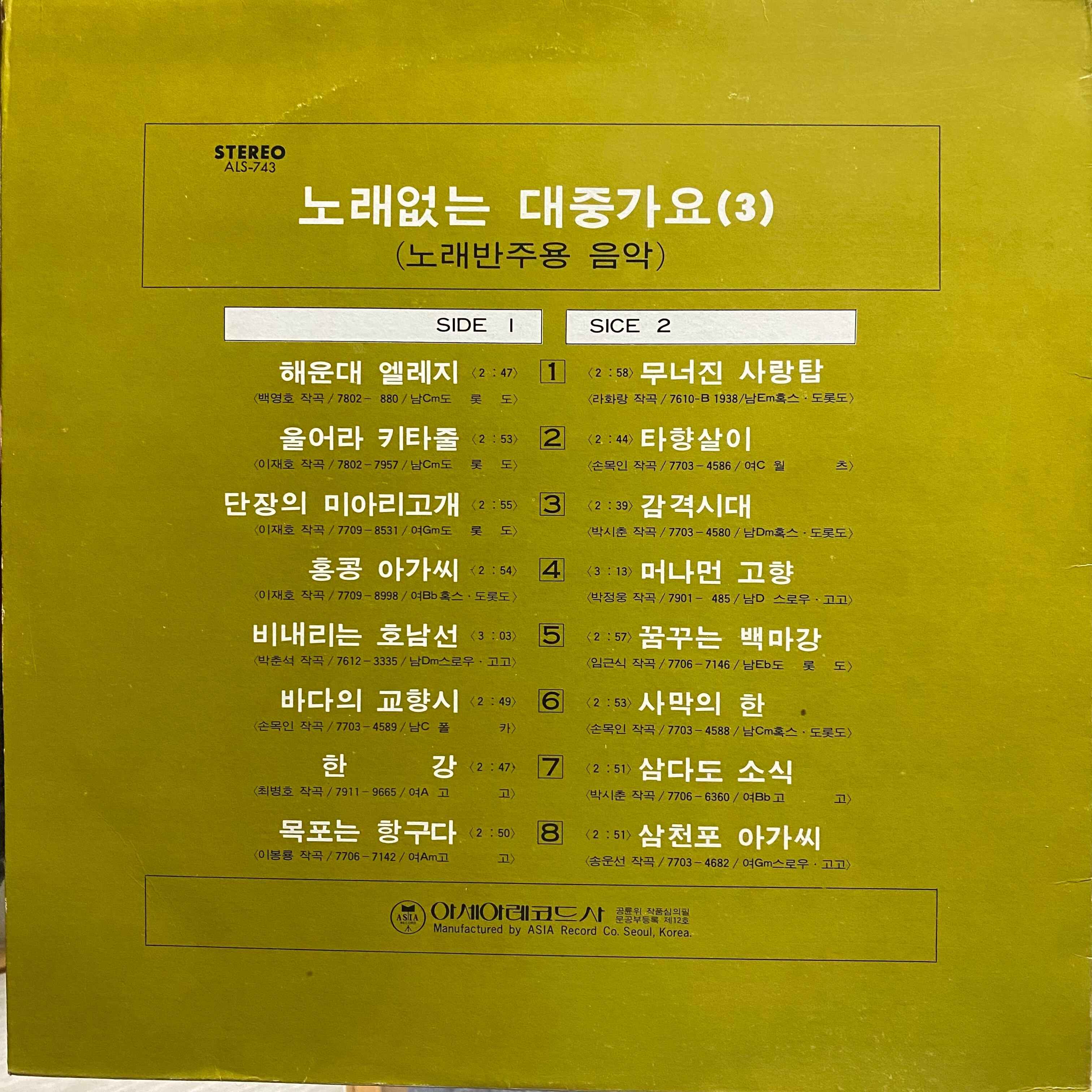 【LP】再入荷 Asia Records House Band 歌の無い大衆歌謡 Popular Songs Without Lyrics Vol.3 1979 AL-743