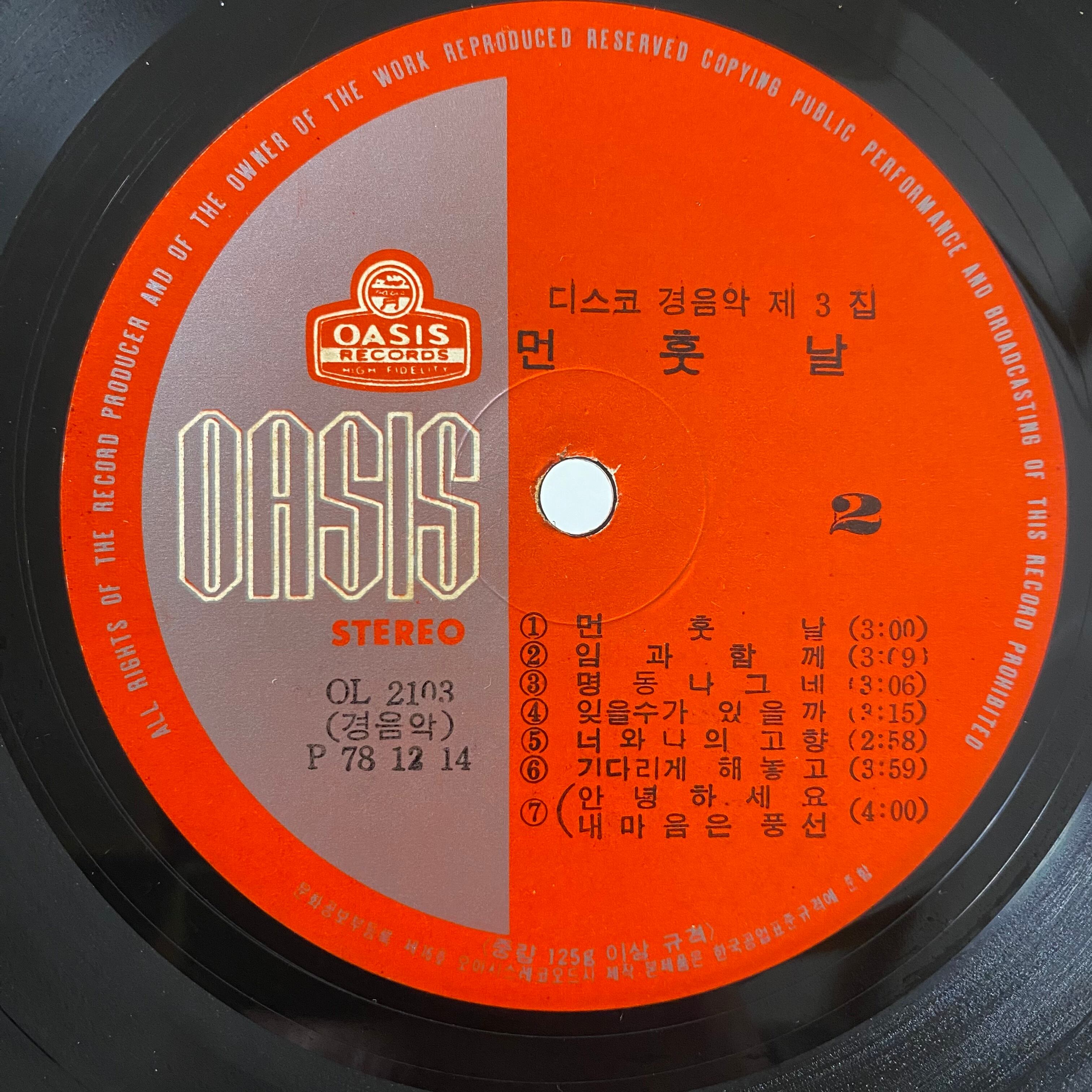 Comment : オアシス専属楽団による韓国ヒット歌謡曲ディスコファンクカヴァー集第3弾78年作。グループサウンド「サランクァピョンファ(愛と平和)」のメンバーとしてキーボード及びヴォーカル・敏腕作編曲家としても活躍したキムミョンゴンがアレンジを担当。サランクァピョンファ節?でファンキー且つグルーヴィなアレンジが素晴らしいです。