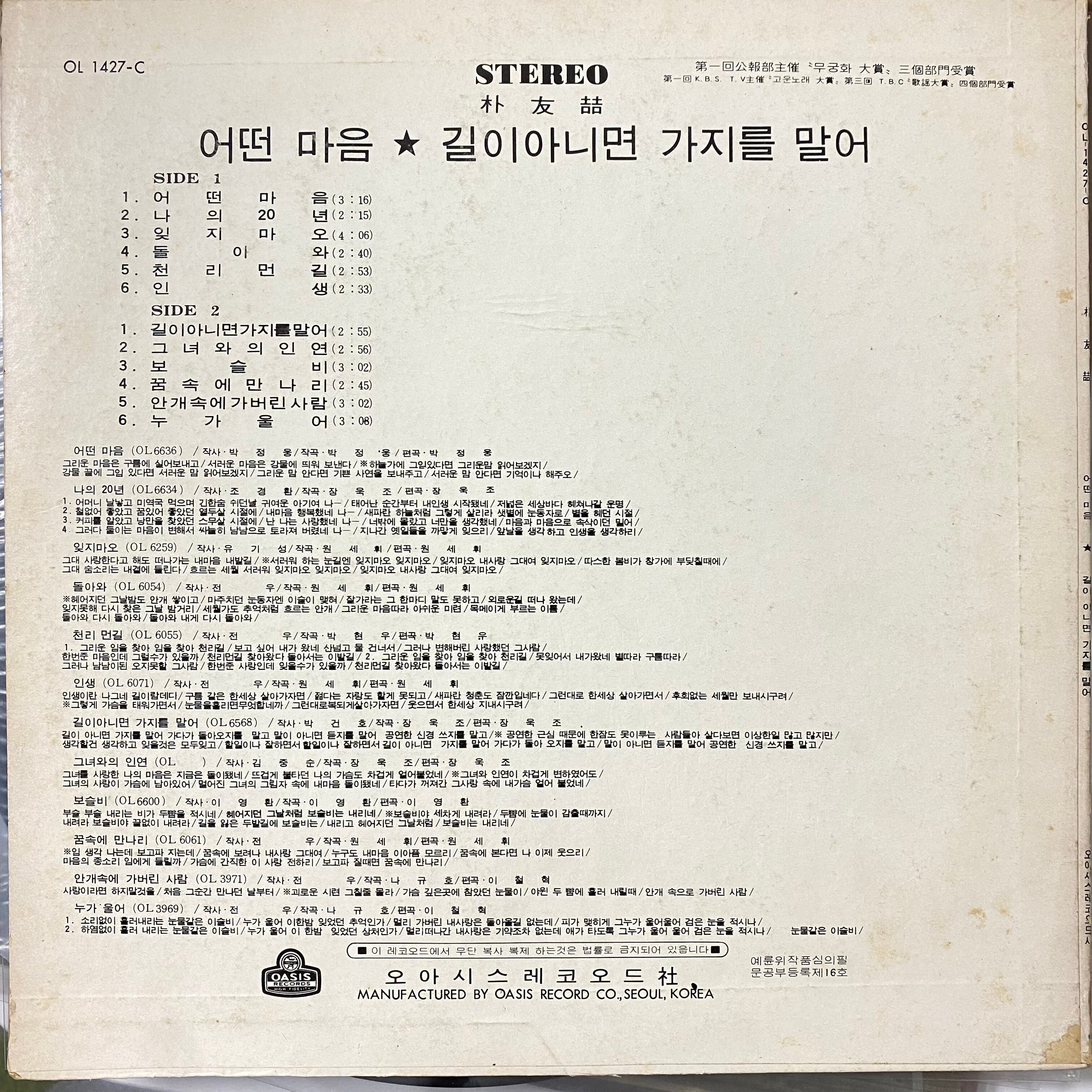 【LP】Park Woo Cheol 1974 OL-1427