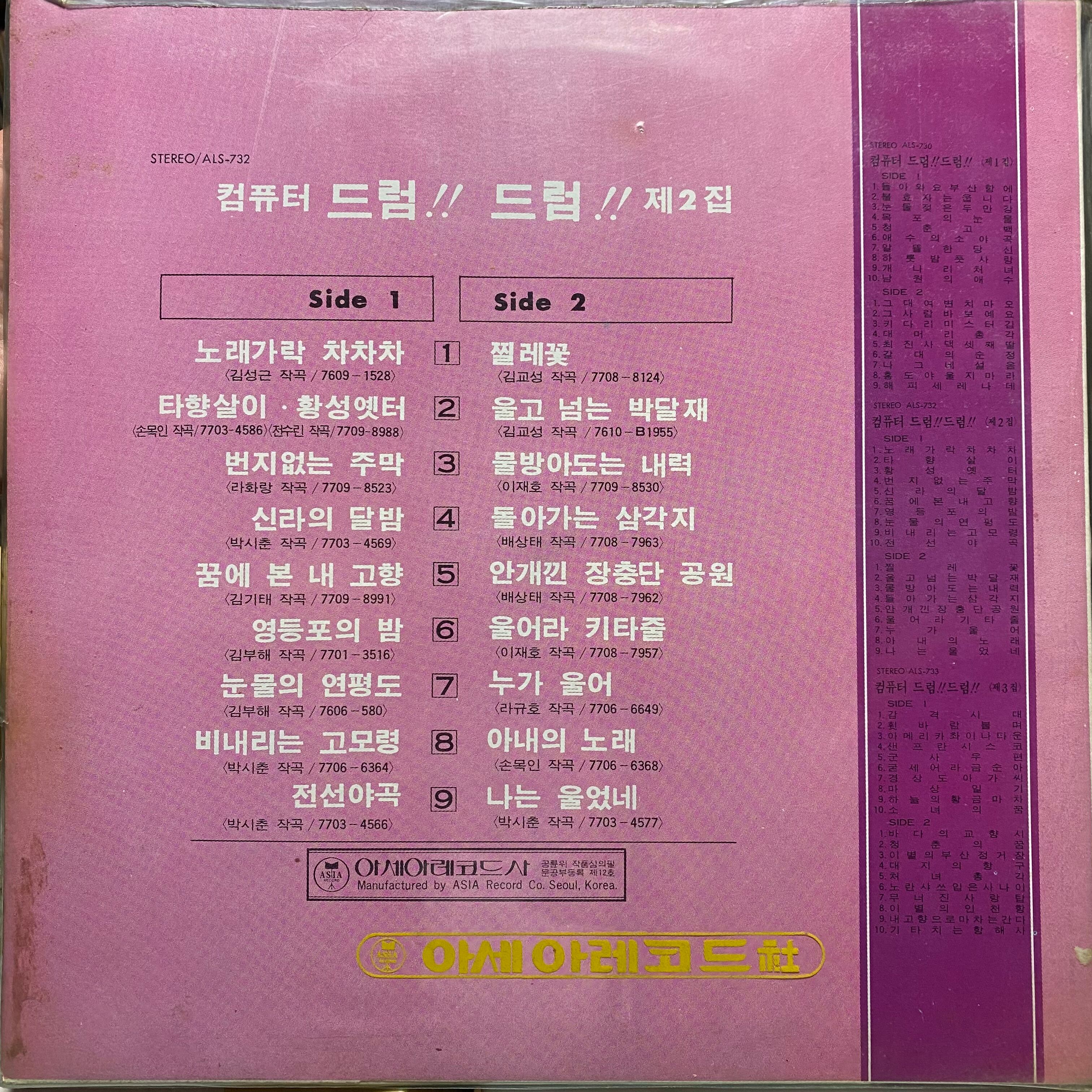 Comment : アジアレコード専属楽団&ドラムマシーンによるヒット歌謡曲メドレー盤、その名も「コンピュータ ドラム‼︎ドラム‼︎」ディスコドラムブブレイクが各曲間に挿入されたDJ諸氏には嬉しい仕様のアルバムです。