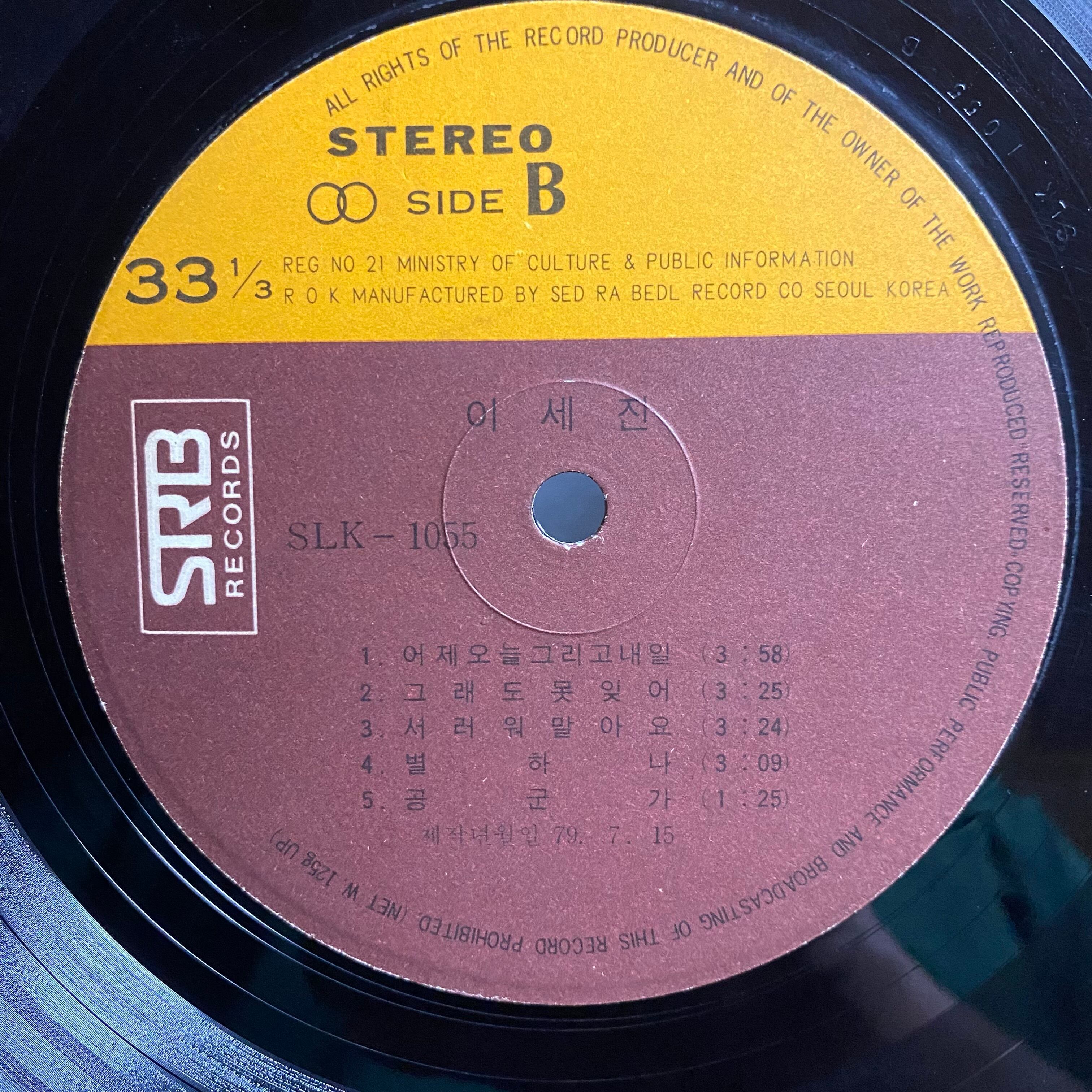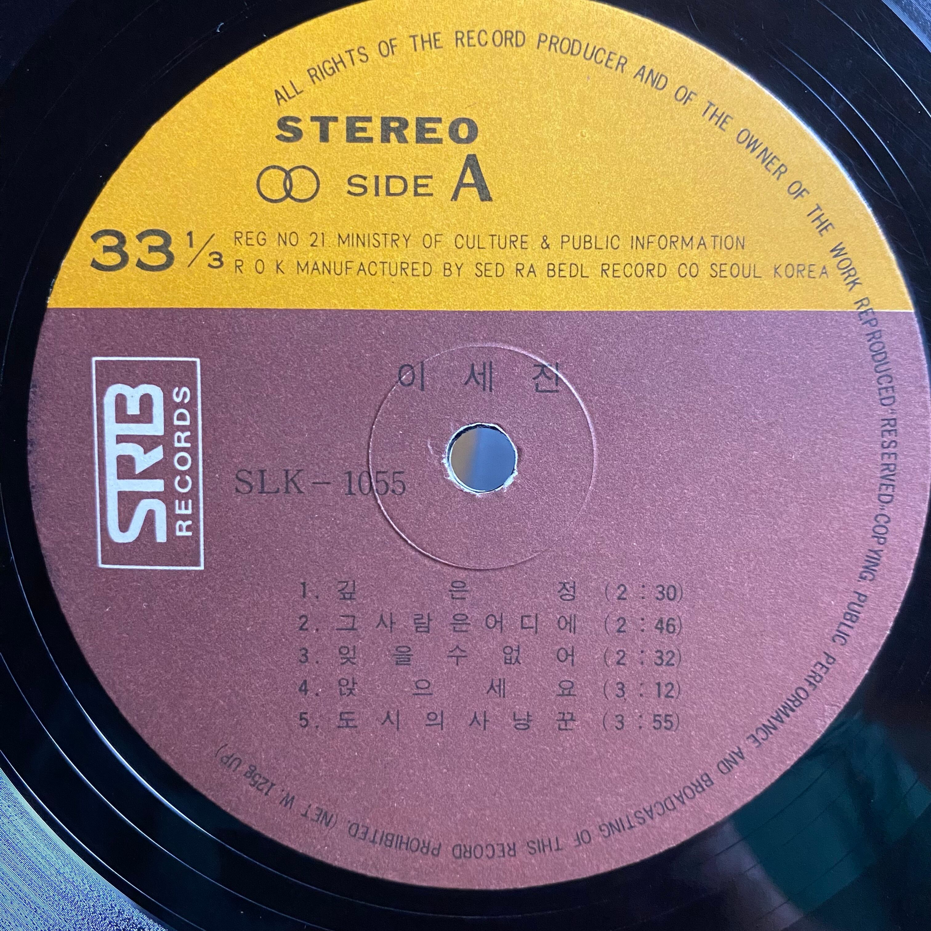 Comment : 伸びのある低音ヴォイスが印象的な韓国フィーメルシンガー イセジンの79年作。敏腕作編曲家・プロデューサー兼フルート奏者 ジョンソンジョプロデュース。チョーヨンピルのヴァージョンも人気のA1“キップンジョン(深い情)、終盤にパーカッションブレイクの入ったファンキー歌謡A4”アンジュセヨ(座ってください)“等収録。