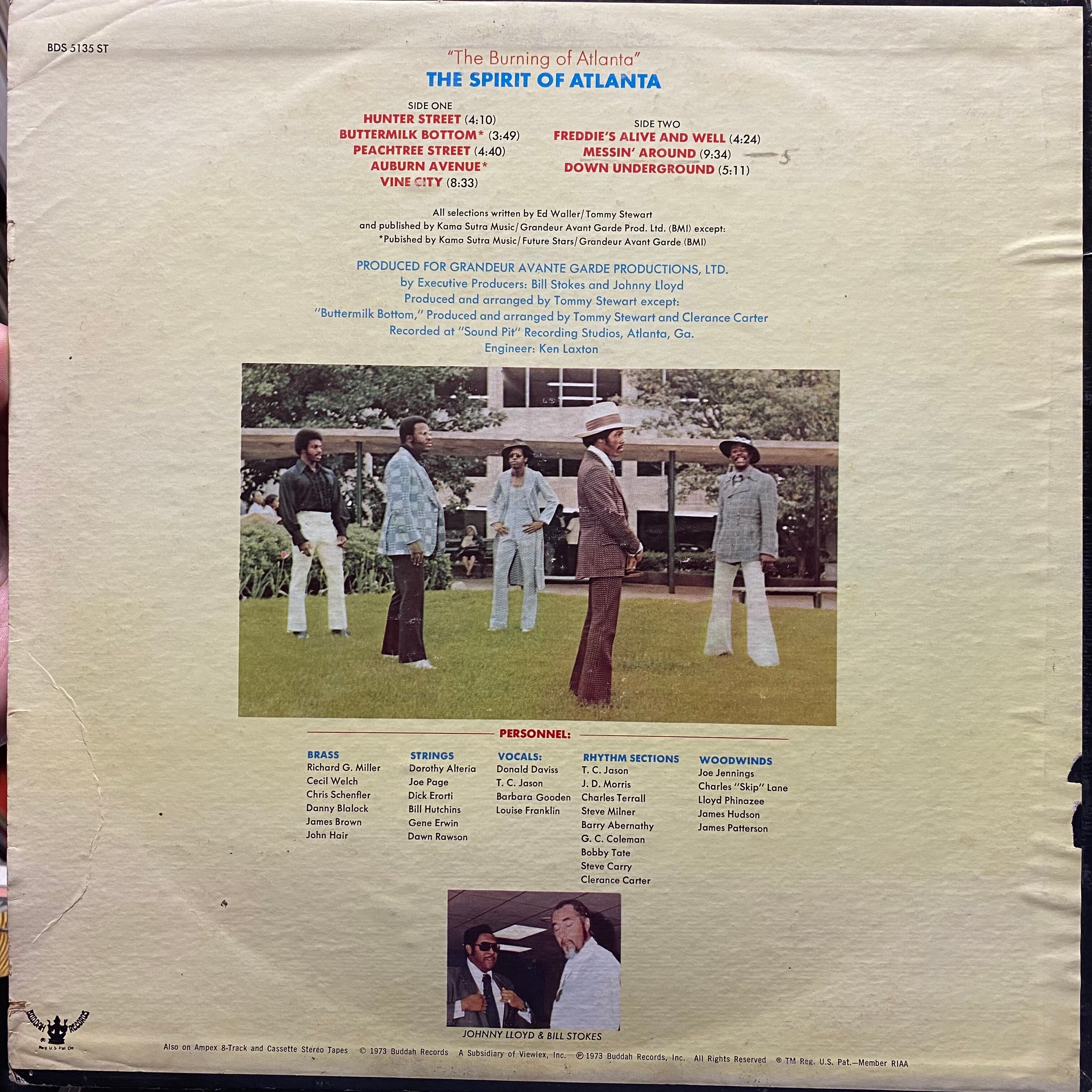 Comment : トミースチュワートプロデュースによるSpirirt OF Atlanta lの73年作。中盤にドラムブレイクの入った疾走感溢れるグルーヴィーファンクB1.Freddie’s Alive And Well(イントロ部分にPressing Faultあり)、ブラス、ストリングスやウッドウインドの鮮やかなオーケストレーションが徐々に高揚感を煽るレアグルーヴ名曲Messin’ Around、イントロからファンキーなドラミングのDown Undergroundを収録。