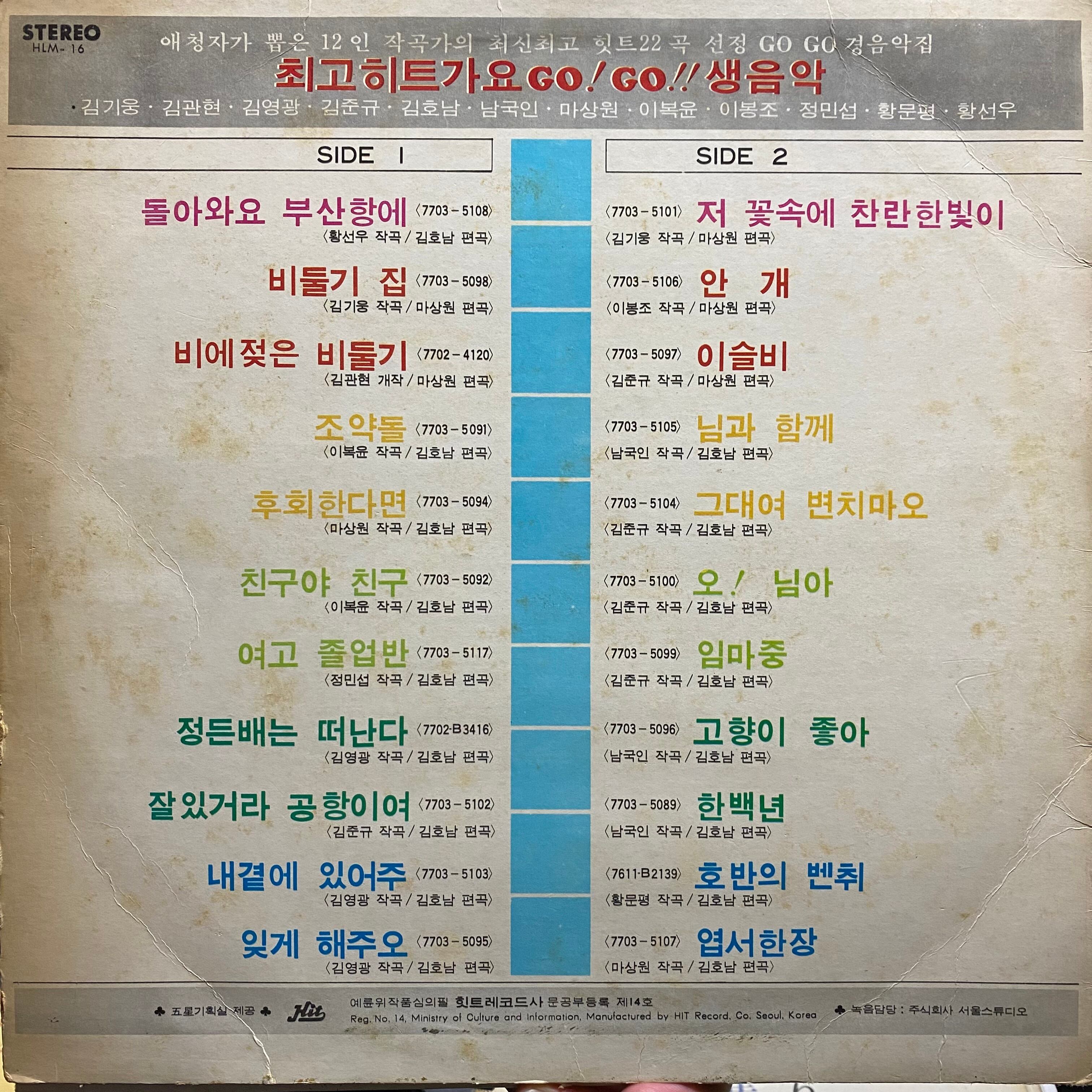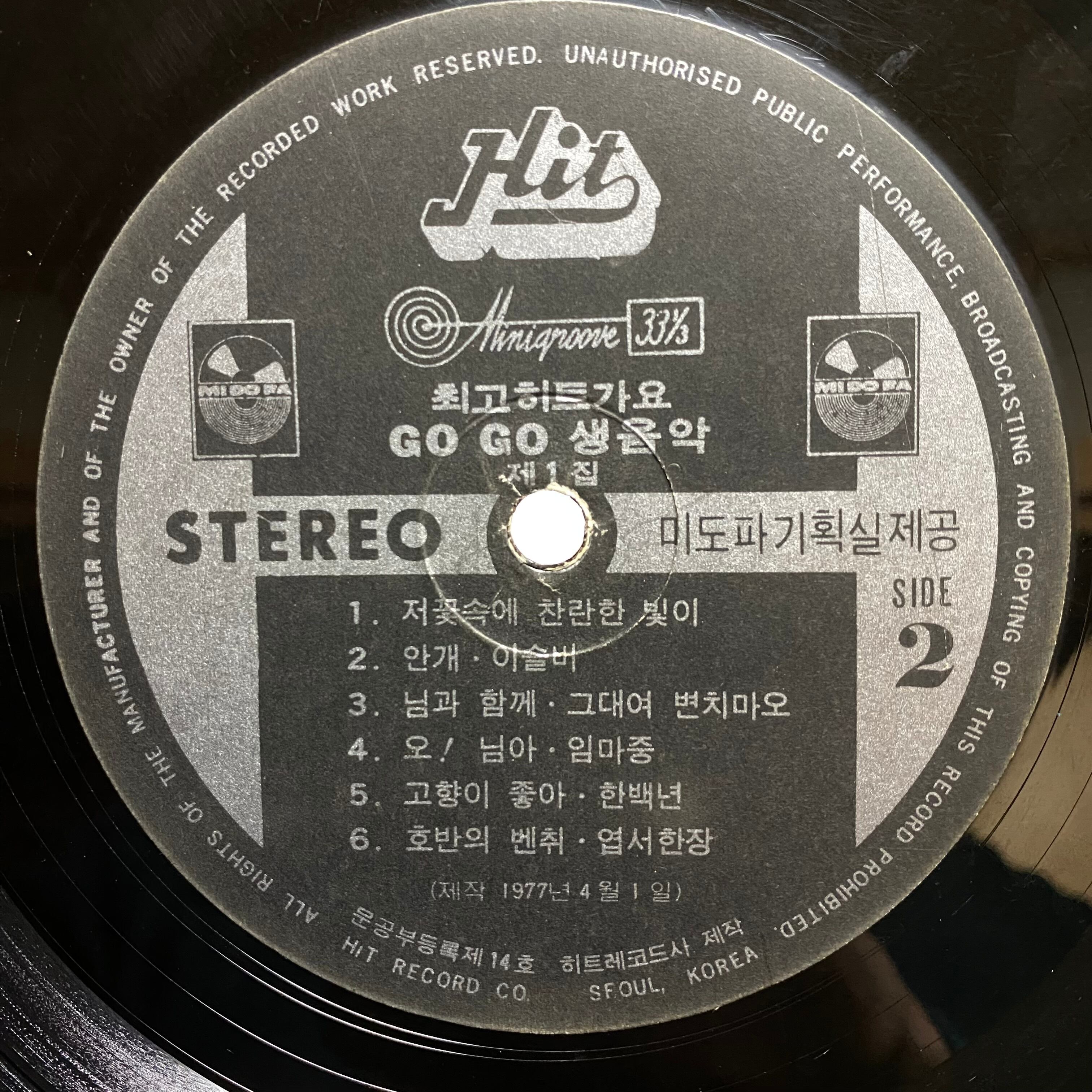 Comment : 韓国歌謡界で活躍した豪華ミュージシャンの競演を収録した77年リリースヒット歌謡軽音楽レコード。イントロにナイスドラムブレイクの入ったA3ピエジョジュンピドゥルギ(雨に濡れた鳩)、中盤にリュウボクソンのパーカッシブなドラムブレイクが現れるジョンフニのB2アンケ(霧)カヴァーやイントロにドープドラムブレイクで始まるB1チョッコッソゲ チャラナンビチ(あの花の中に眩い光が)を収録。