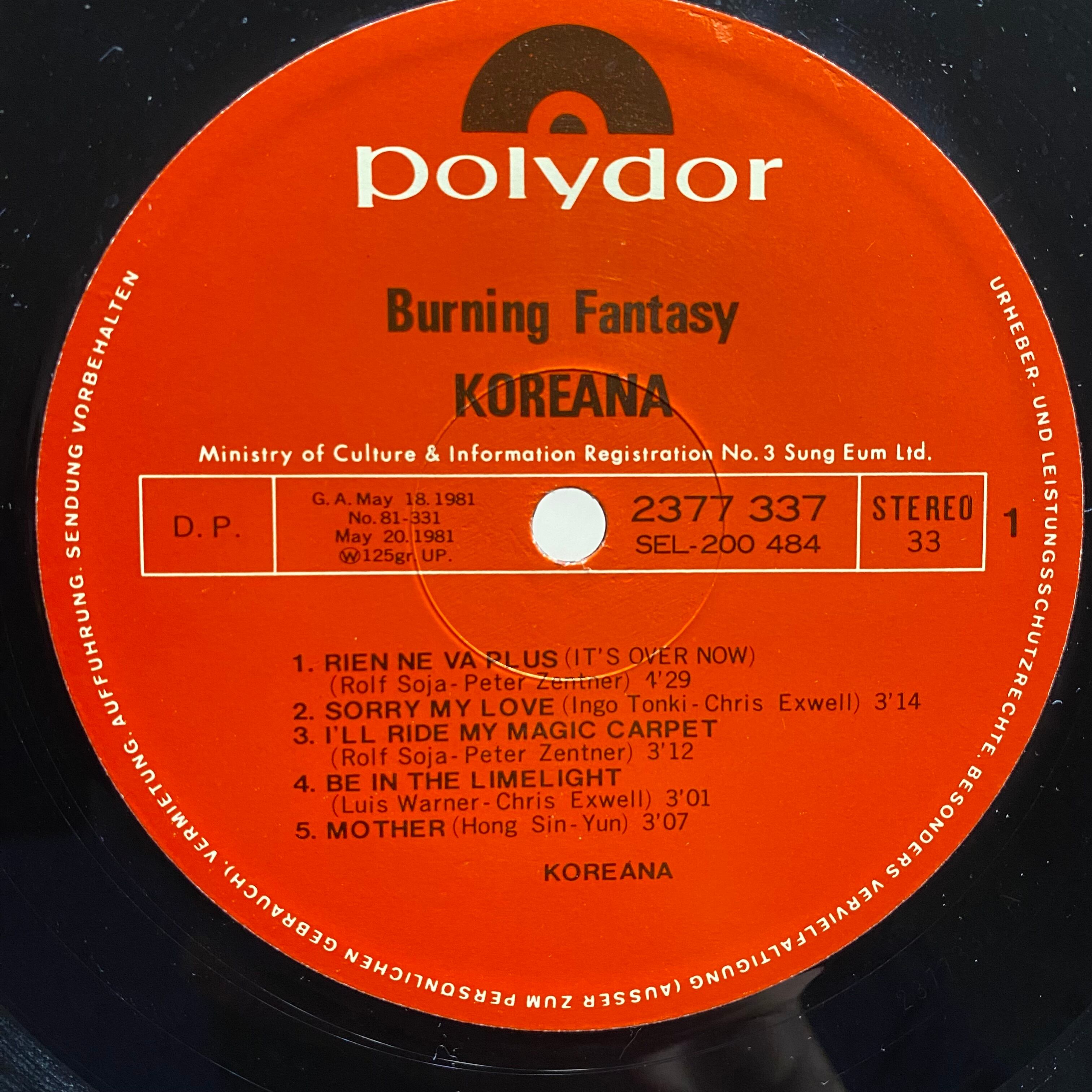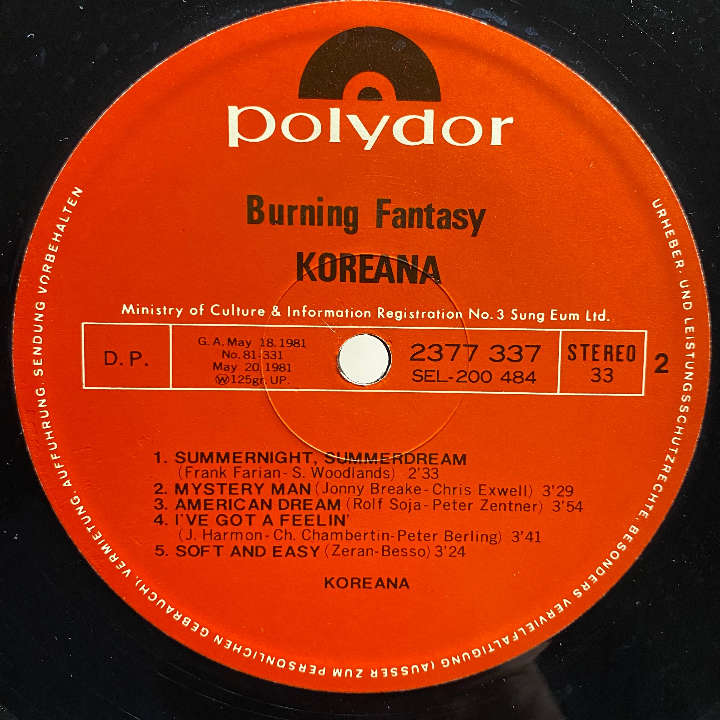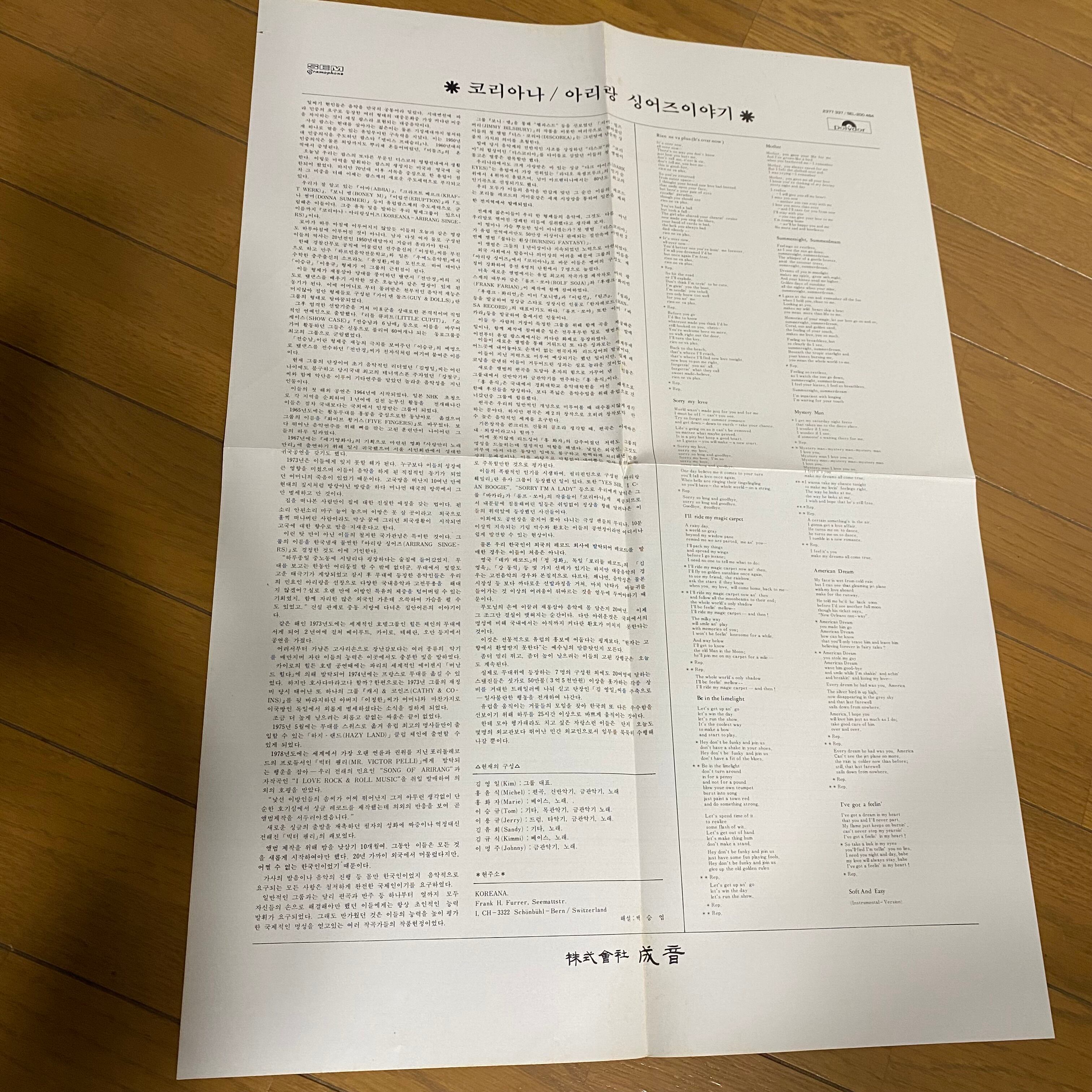 Comment : 88年ソウルオリンピック公式テーマソング・ジョルジオ・モロダープロデュース“Hand In Hand(손에 손잡고)”でも良く知られている韓国混声ディスコポップスグループKoreana aka Arirang Songersの81年作。ポスター付き。