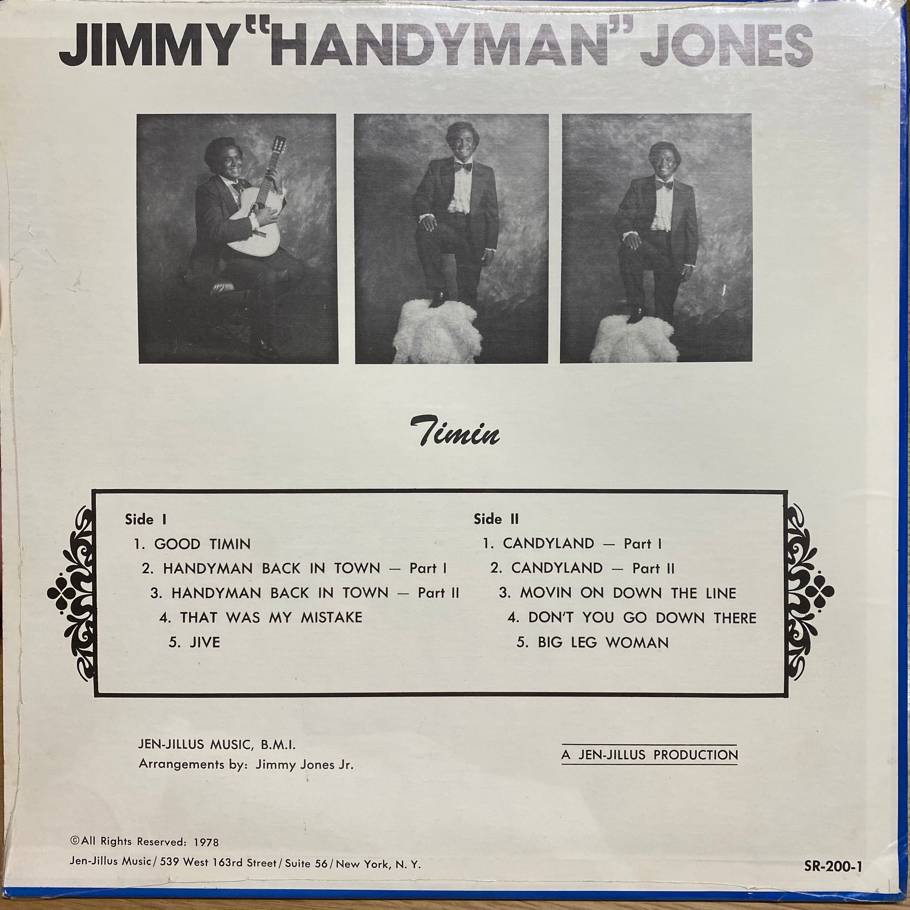 Comment : ヴォーカルグループThe Berliner出身のJimmy Handyman Jonesの78年作。B-Boy Battleでもしばしばプレイされる、強烈なドラムブレイクが入るファンキーディスコHandyman Back In Town Pt.1 & Pt.2をはじめ、ファンキーディスコブレイクの入るThat Was My Mistake等収録。