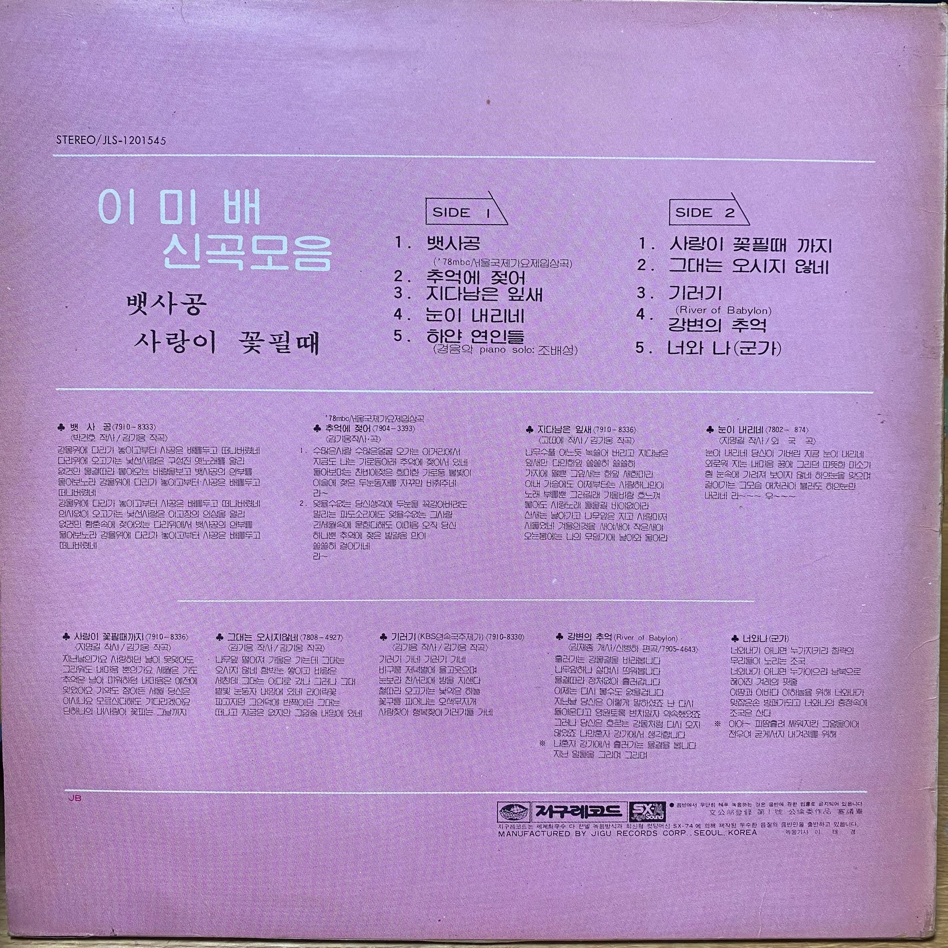 Comment : 79年に“ベッサゴン(船頭)”でデビューした韓国フィーメル歌手イミベの記念すべきデビューアルバム。タイトル曲A1“ベッサゴン(船頭)”はユンシネのコンヨニ(何となく)にも通じるグルーヴィファンク歌謡。