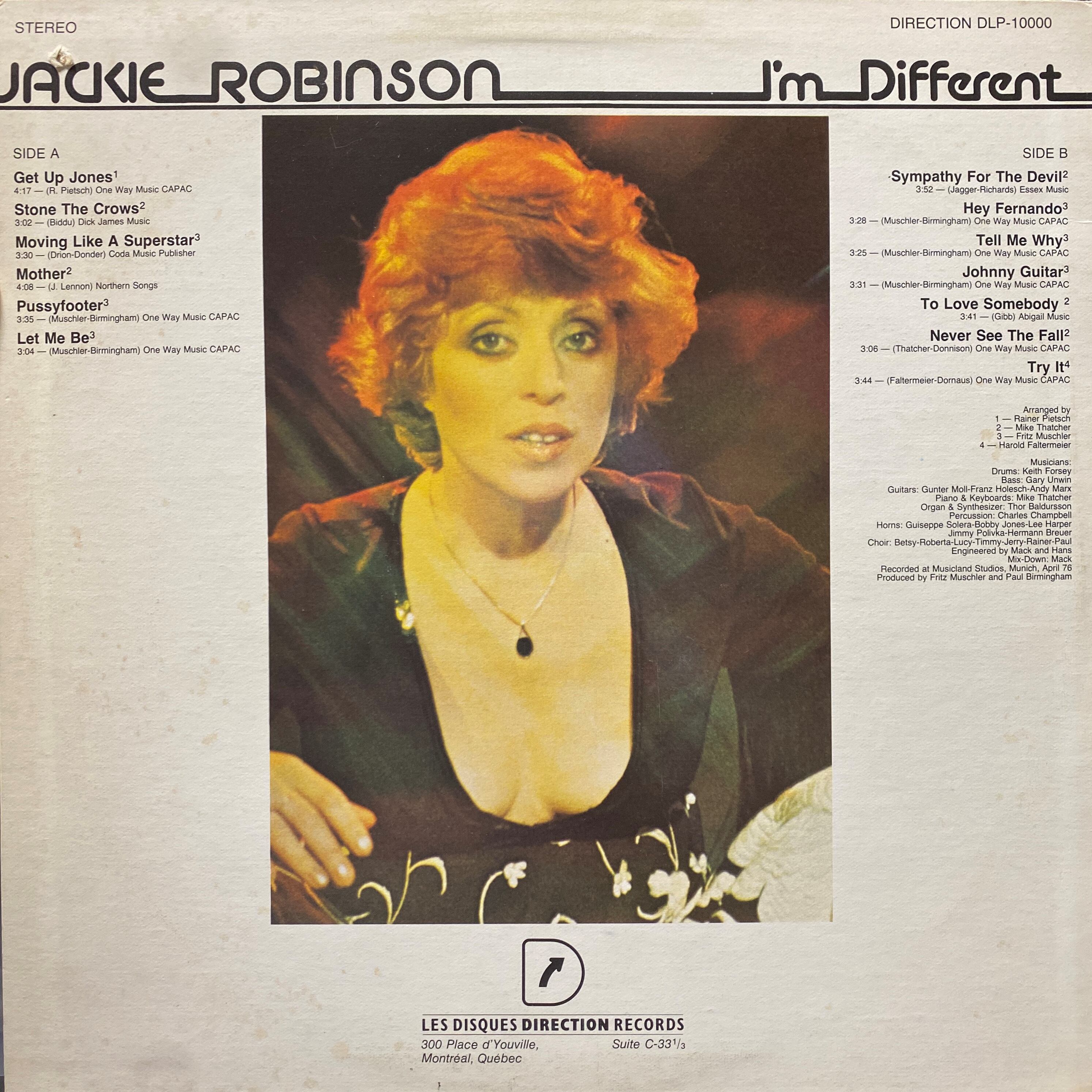 Comment : ドイツのディスコ/ポップシンガーJackie Robinsonの76年リリース唯一作(77年リリース2nd Press)。サンプリングソース・ブレークビーツ名コンピレーションアルバム"Ultimate Breaks & Beats"に収録されたディスコブレイククラッシック"Pussyfooter"を筆頭にナイスディスコファンクチューン多数収録。