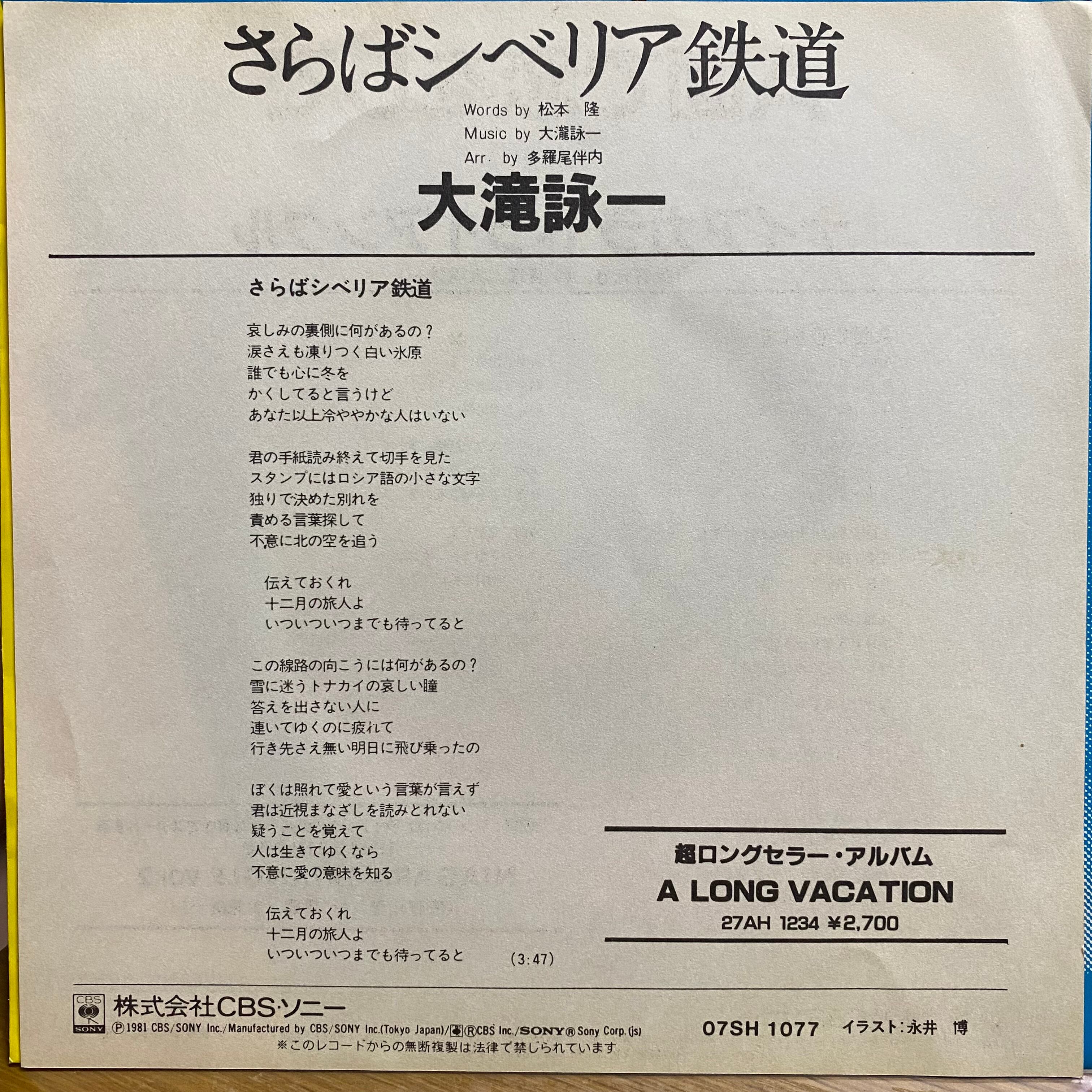 【“7】大滝詠一 / ナイアガラトライアングル - さらばシベリア鉄道 c/w A面で恋をして