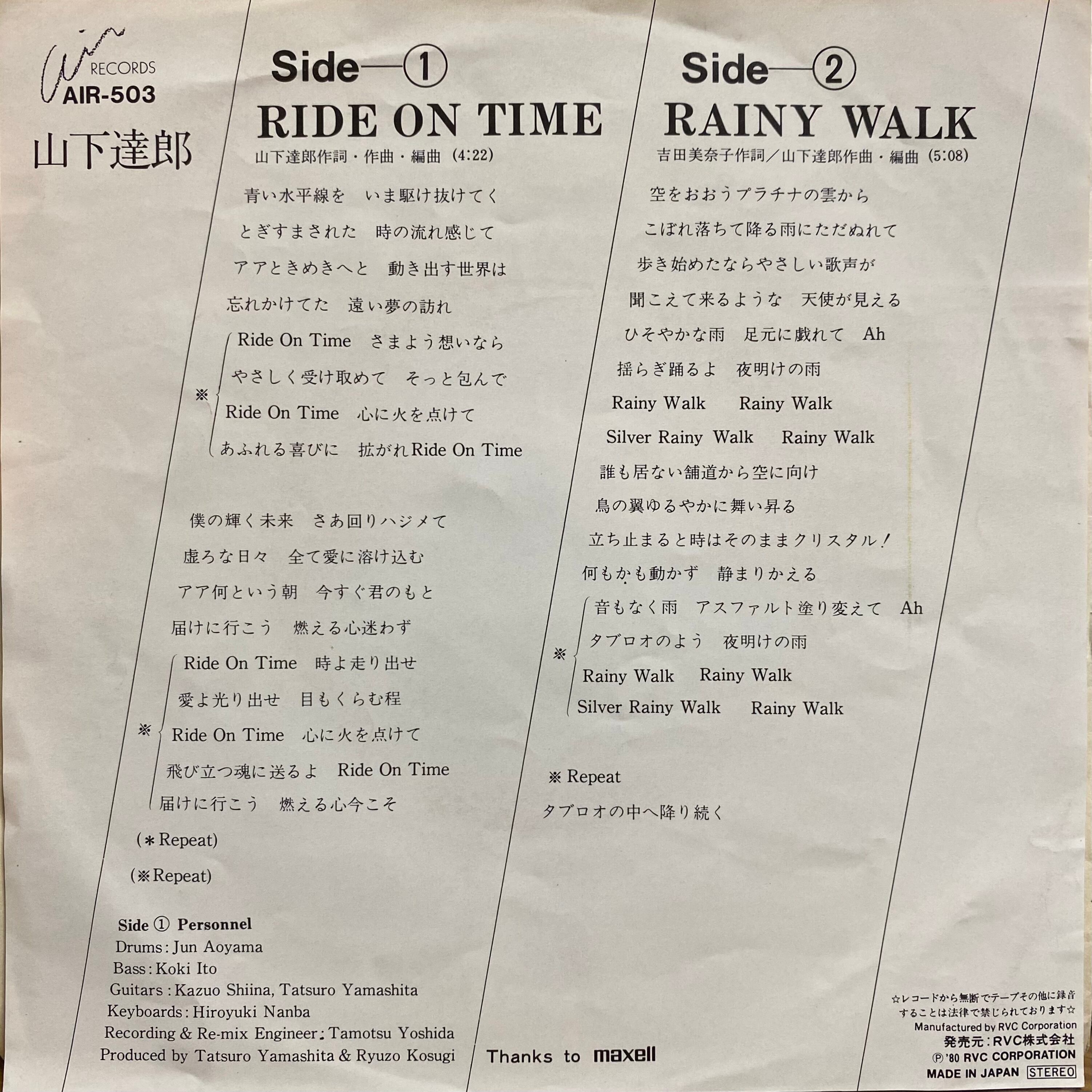 【“7】山下達郎 / Ride On Time c/w Rainy Walk
