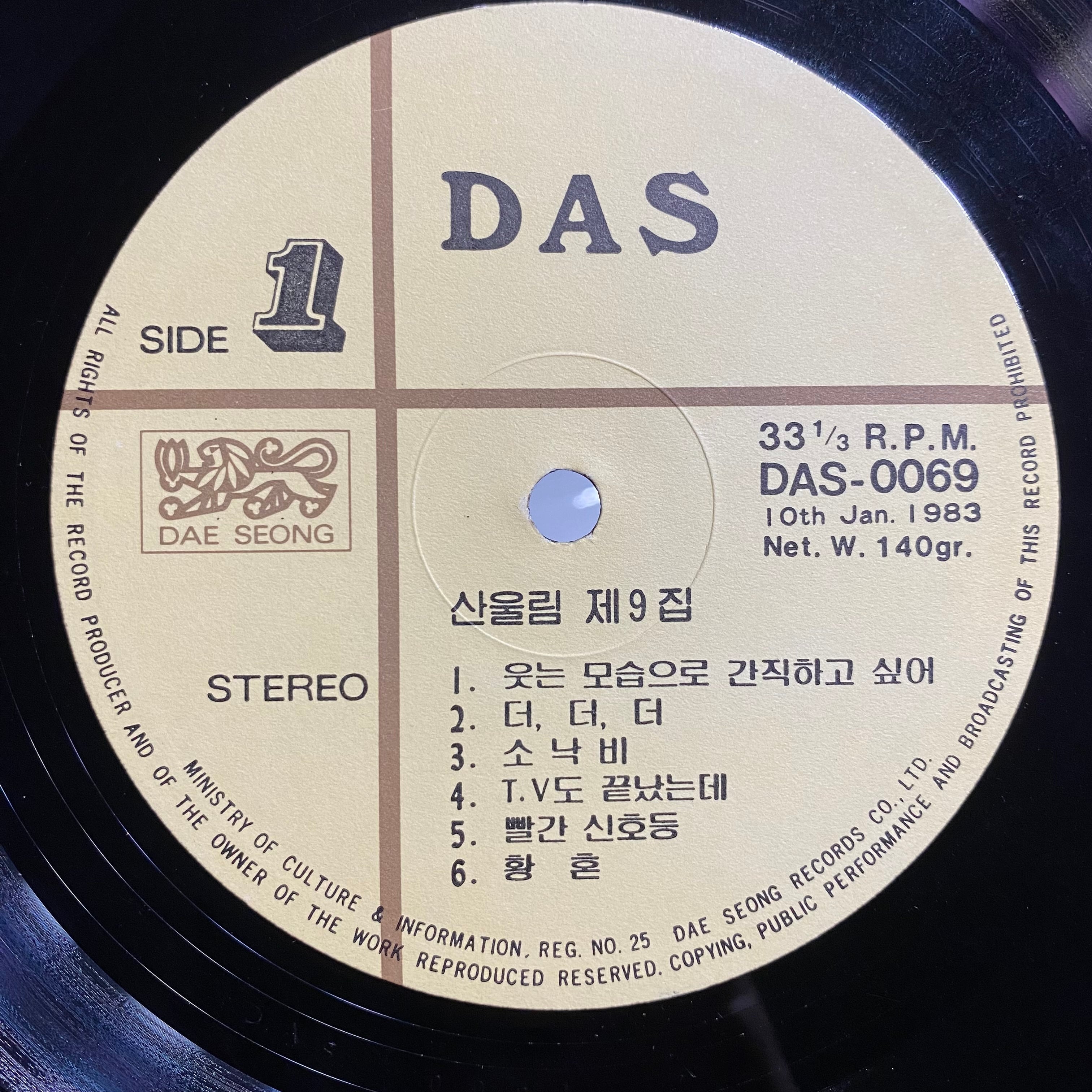 Comment : 韓国国民的ロックグループサヌリムの83年リリース9thアルバム。ドープなドラムブレイクがイントロに入るスローテンポのサイケロックB3”チョギ(あっちに)“、アップテンポなファンキーハードロックB2.ギレンサラムドマンネ(道には人も多いね)、同タイプのハードロックA4.TVドックナヌンデ(TVも終わったのに)等オススメです。サヌリムの中でも見かけないレコードです。