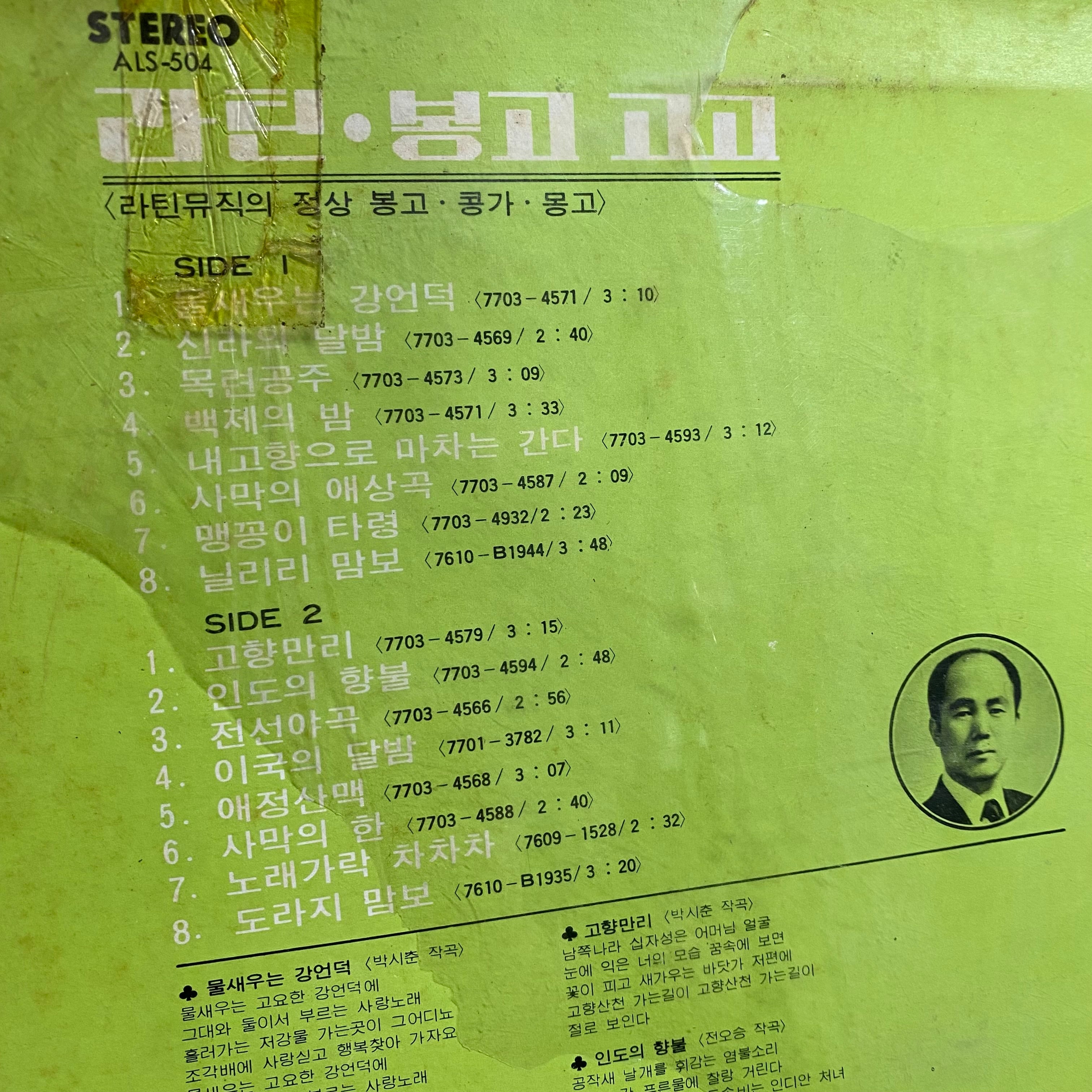 Comment : アジア管弦楽団による韓国伝統歌謡曲のラテンファンク/ボンゴカバーアルバム。DJ Soulscape氏ミックスにも収録されたミョン・クッカン氏の1956年リリースしたヒット曲カヴァーA5.ネコヒャンウロマチャヌンカンダ(私の故郷に馬車は行く)をはじめ、随所にドラムブレイクが入ったファンキーなアレンジをお楽しみ頂ける(私の主観)ASIAN FUNK/RAREGROOVE DJ USEな一枚です!
